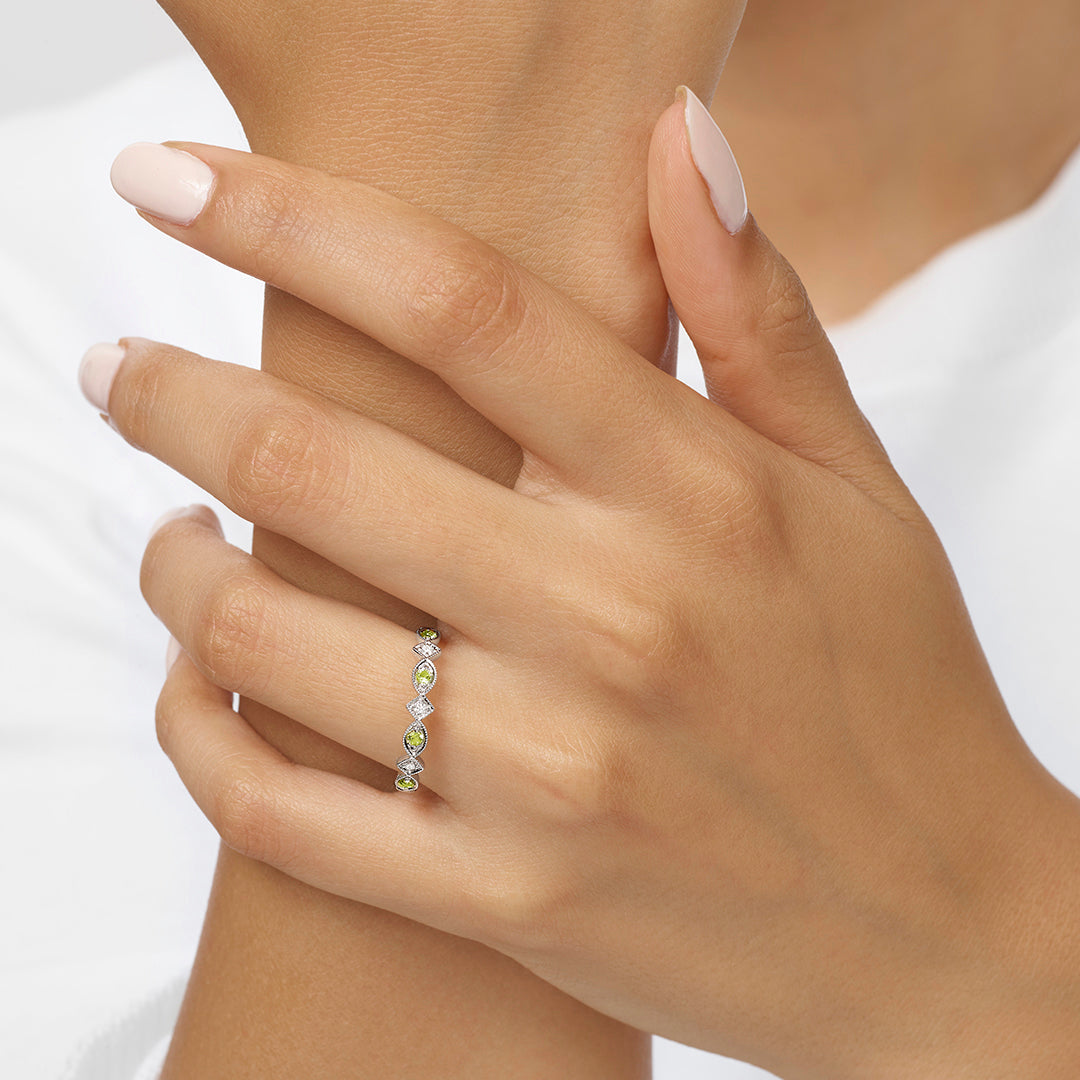 10Kt White Gold Diamond 1/10Ctw & Peridot 1/7Ctw Ring