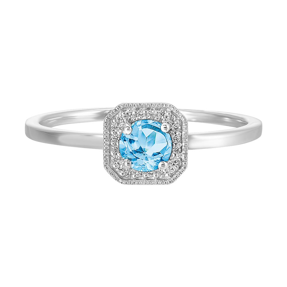 10Kt White Gold Diamond 1/12Ctw & Aquamarine 3/8Ctw Ring
