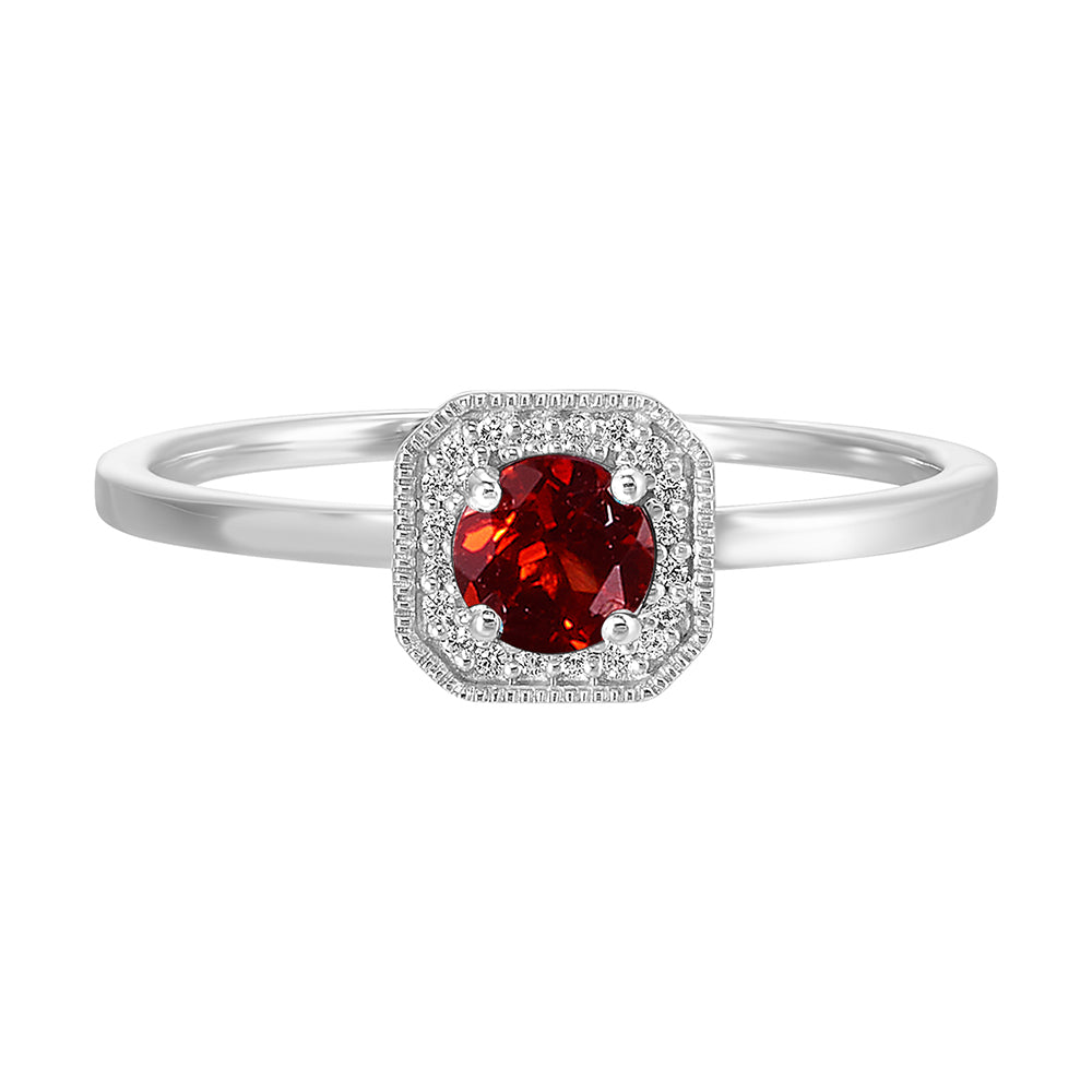 10Kt White Gold Diamond 1/12Ctw & Garnet 1/3Ctw Ring