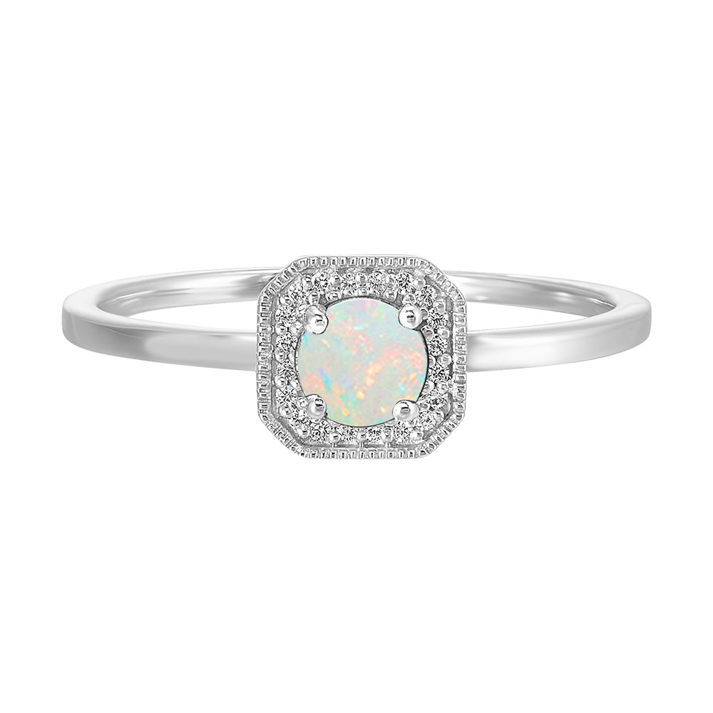 10Kt White Gold Diamond 1/12Ctw & Opal 1/3Ctw Ring