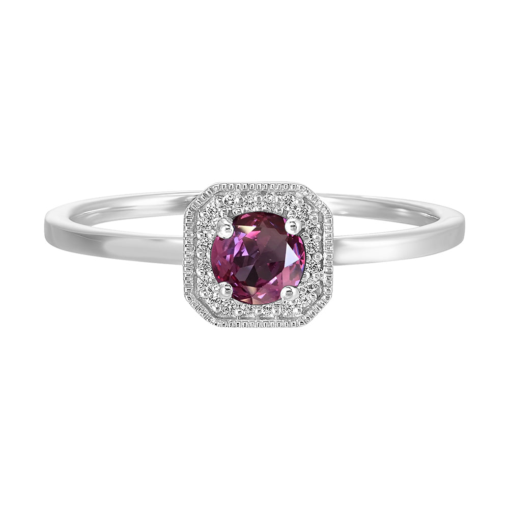 10Kt White Gold Diamond 1/12Ctw & Syn Alexandrite 1/3Ctw Ring
