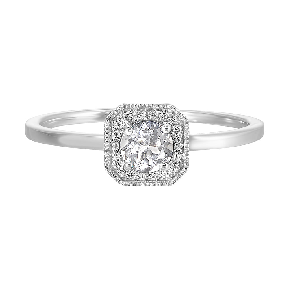 10Kt White Gold Diamond 1/12Ctw & White Topaz 5/8Ctw Ring