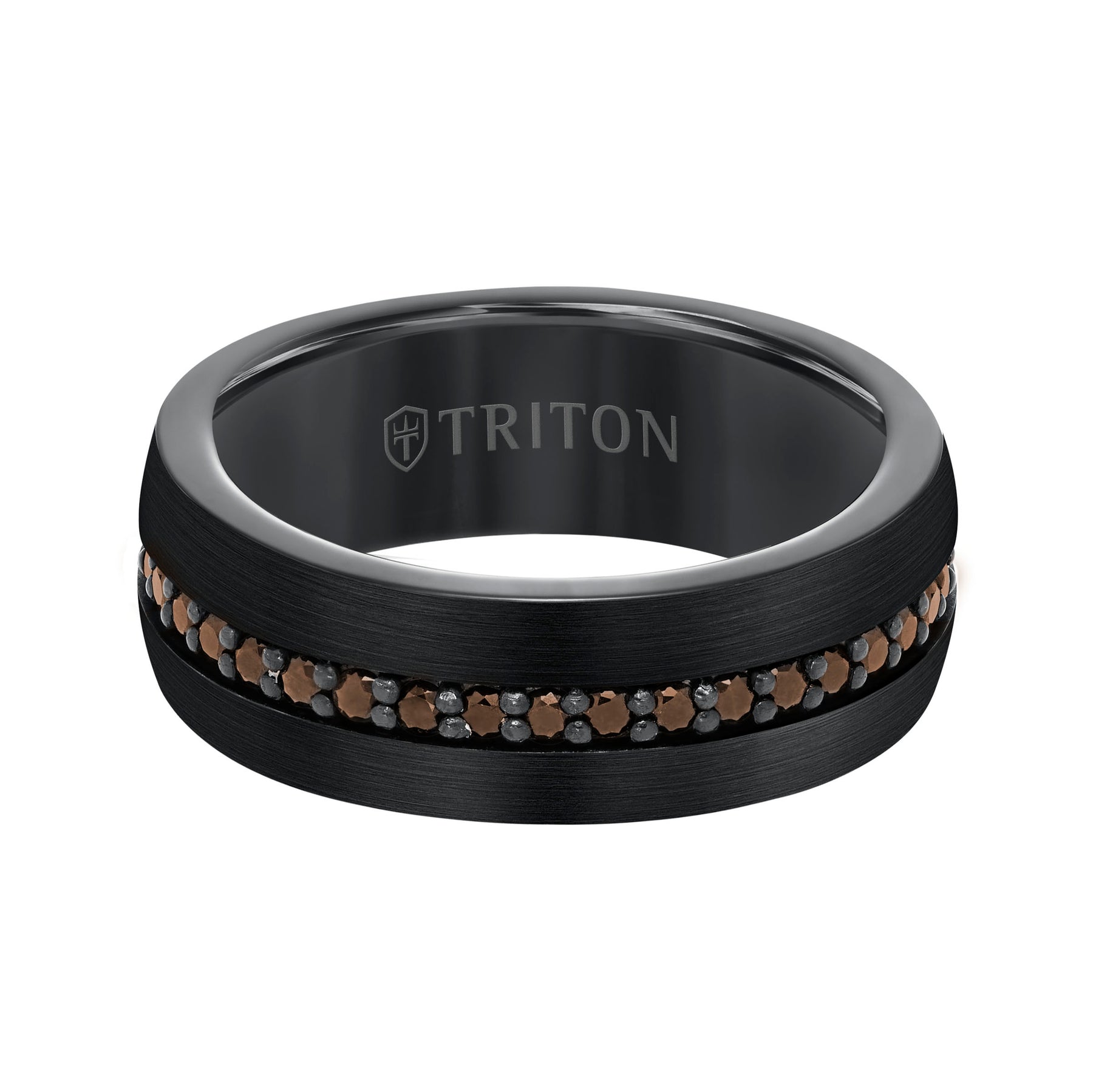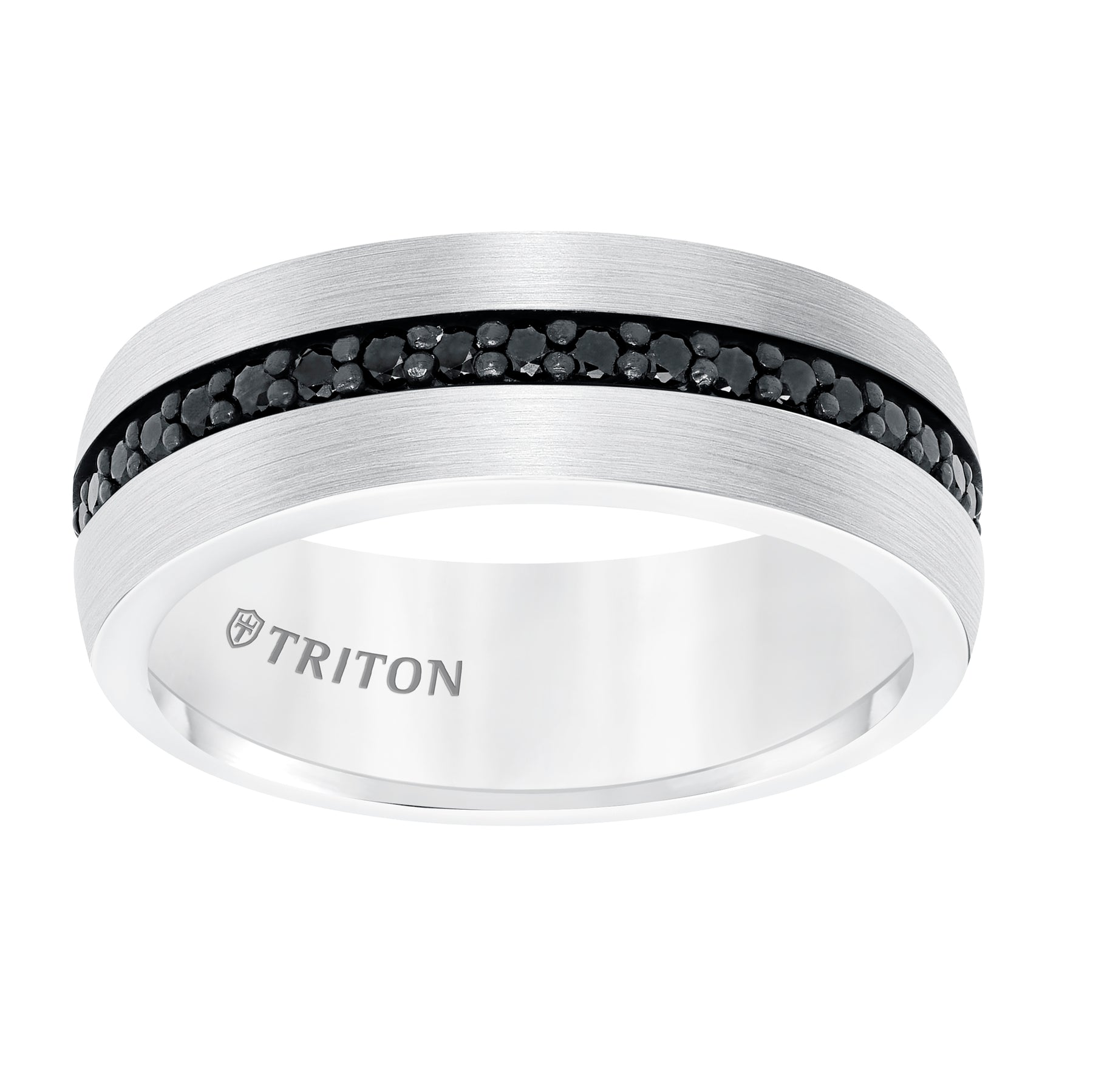 8mm Black Tungsten Carbide Ring with Satin Finish and Asymmetrical Black Cut