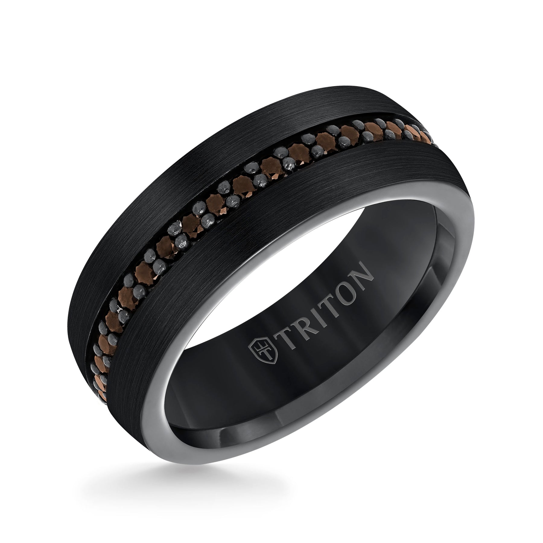 8MM Comfort Fit Black Tungsten All Around Smokey Quartz Sapphire Band