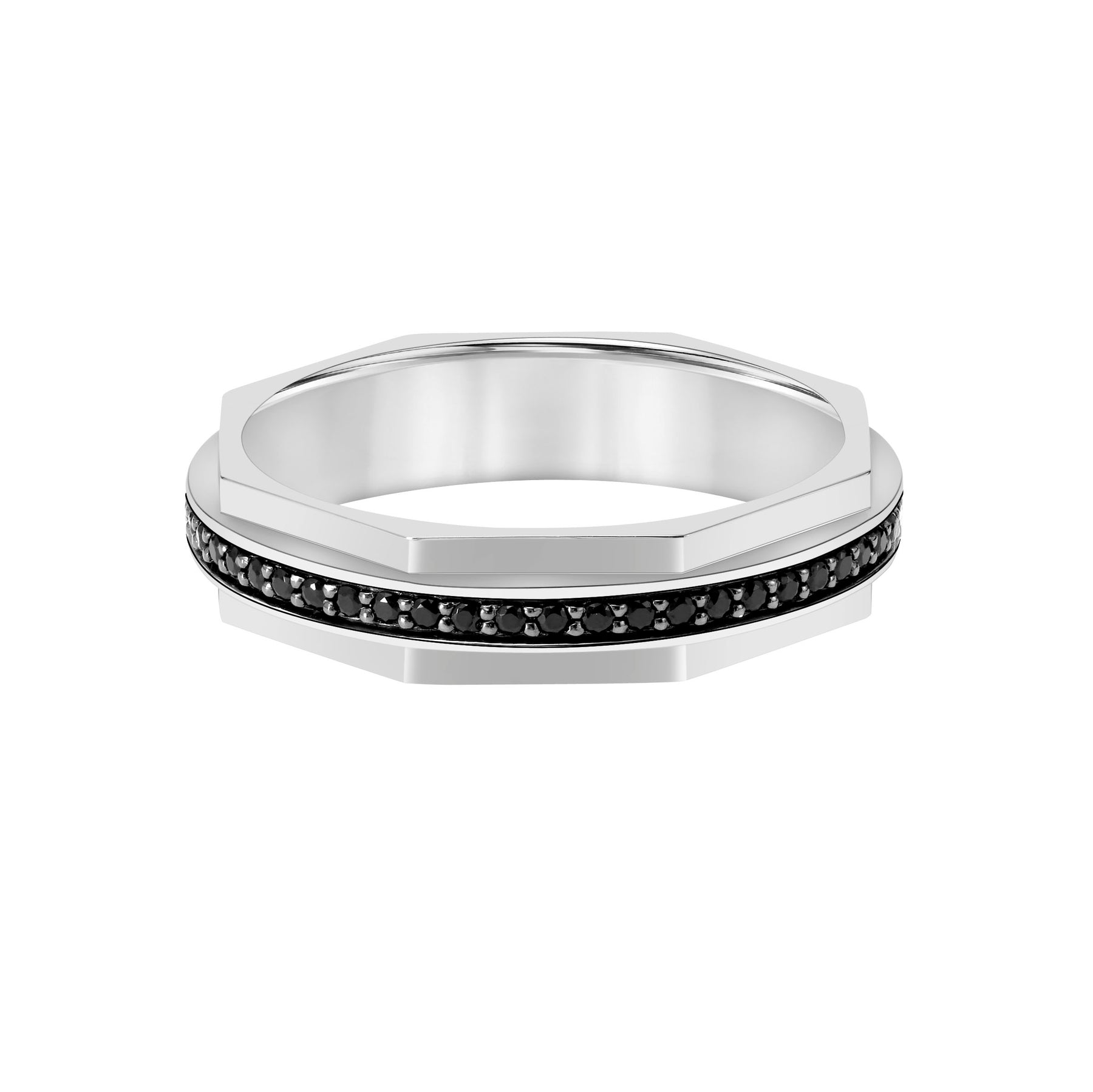 Luxuriously designed, this 9 stone black diamond wedding band features a low-domed, semi-square profile with a soft sand finish and flat edges