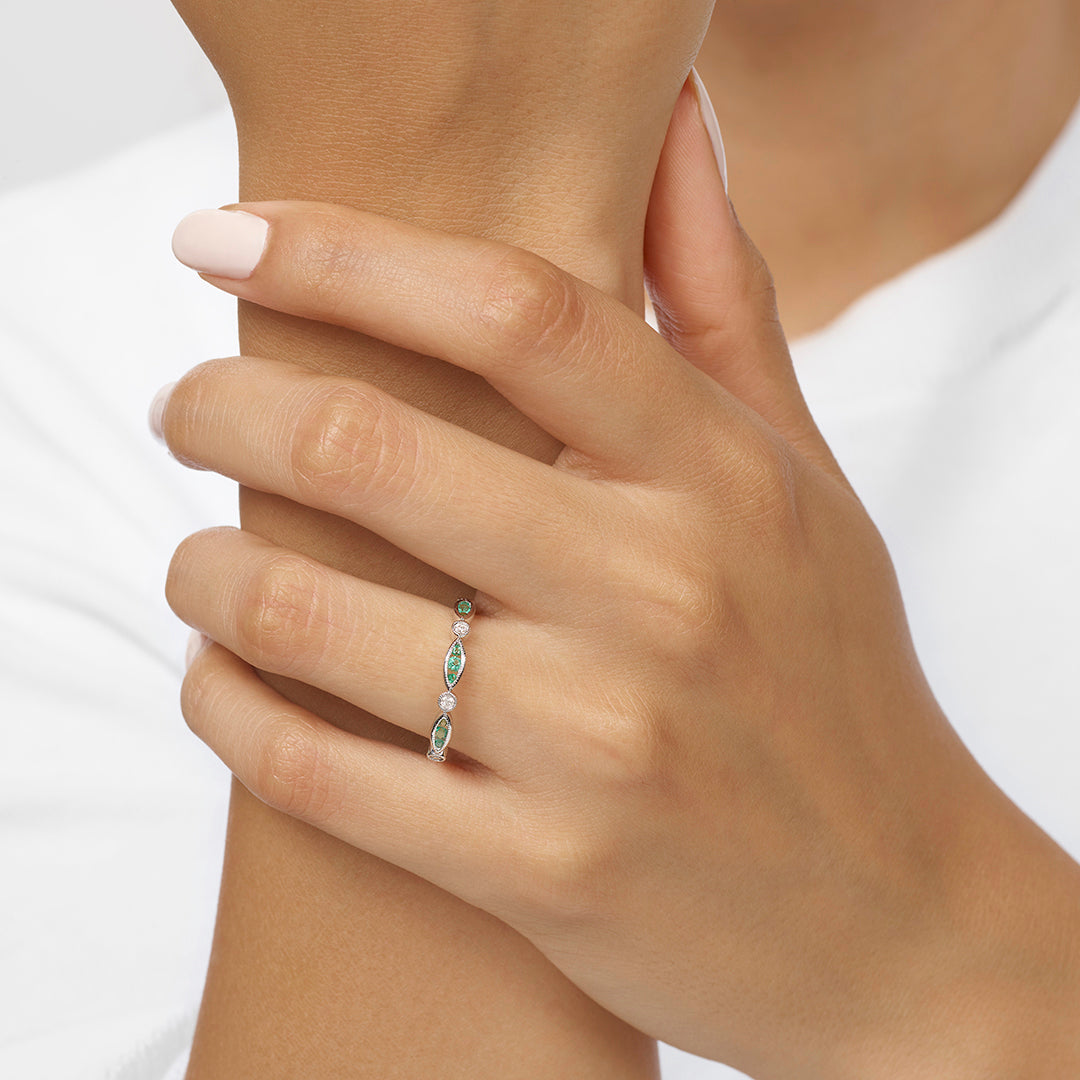 14Kt White Gold Diamond 1/5Ctw & Emerald 1/5Ctw Ring