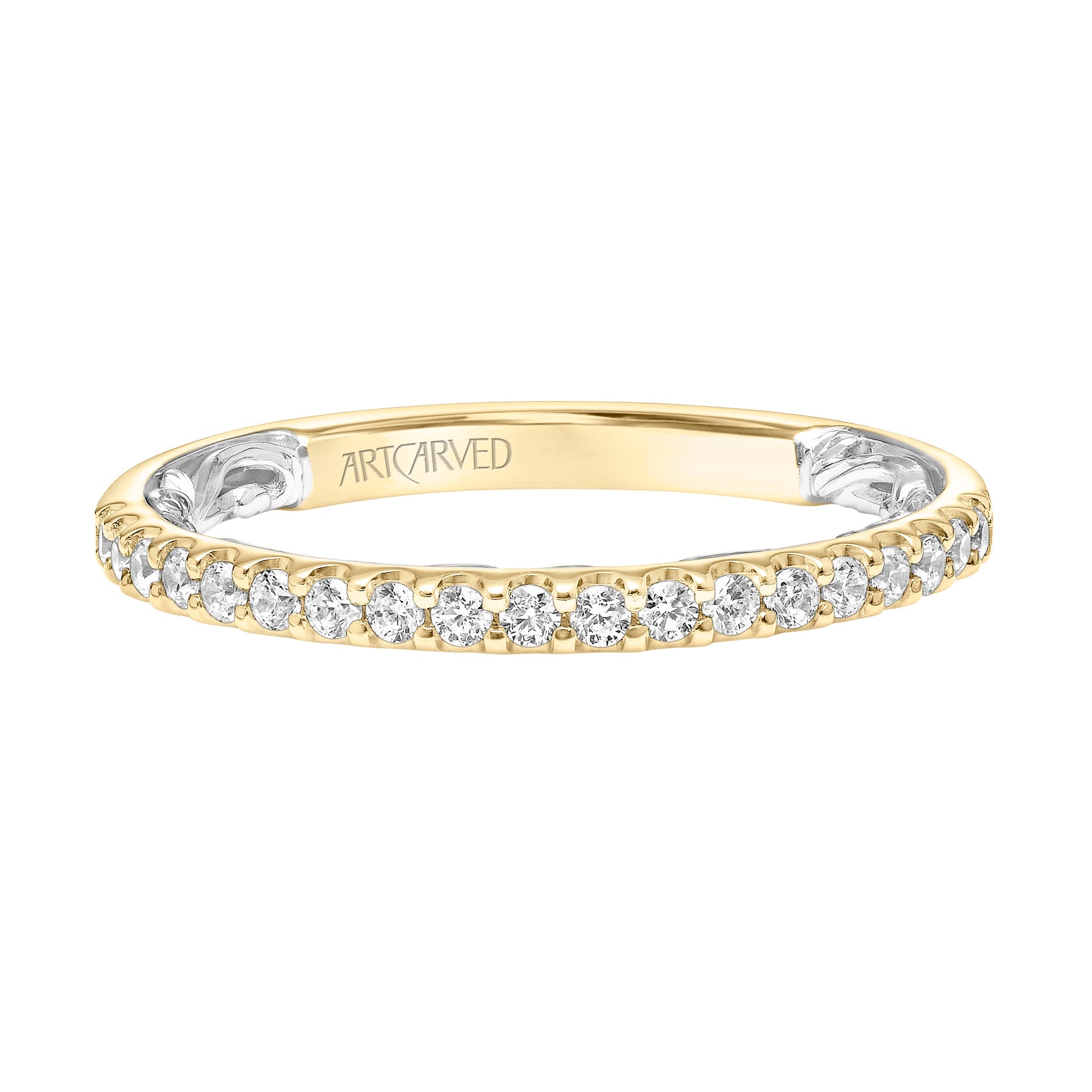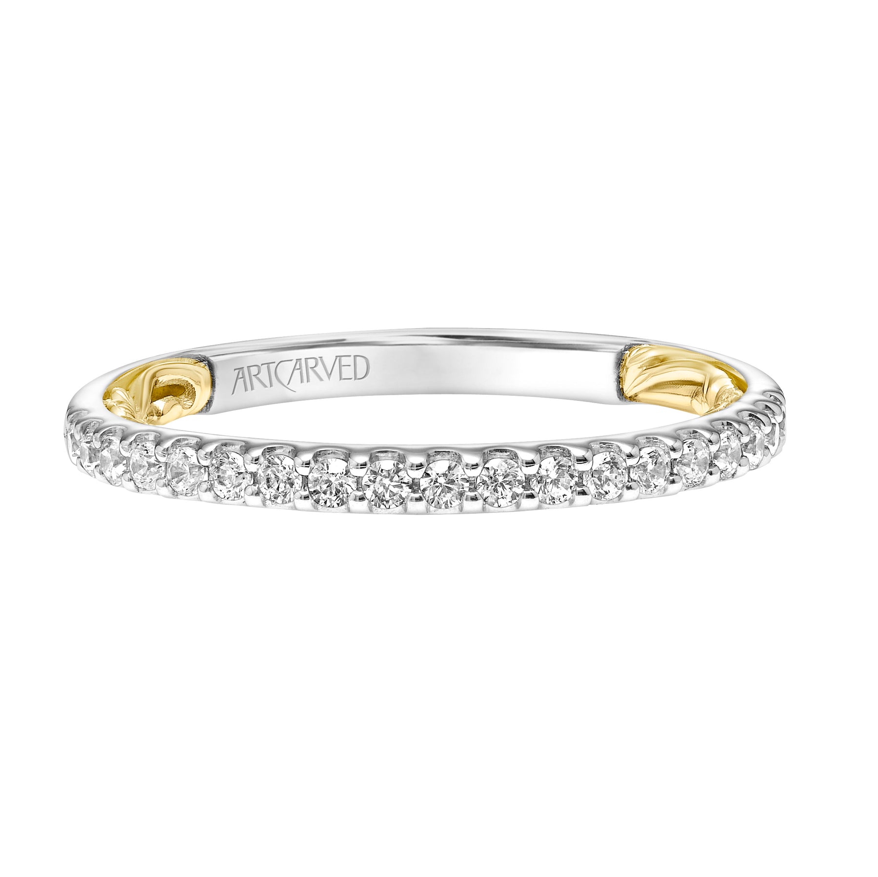 Lyric Channel Set Diamond Wedding Band with Inner Carved details