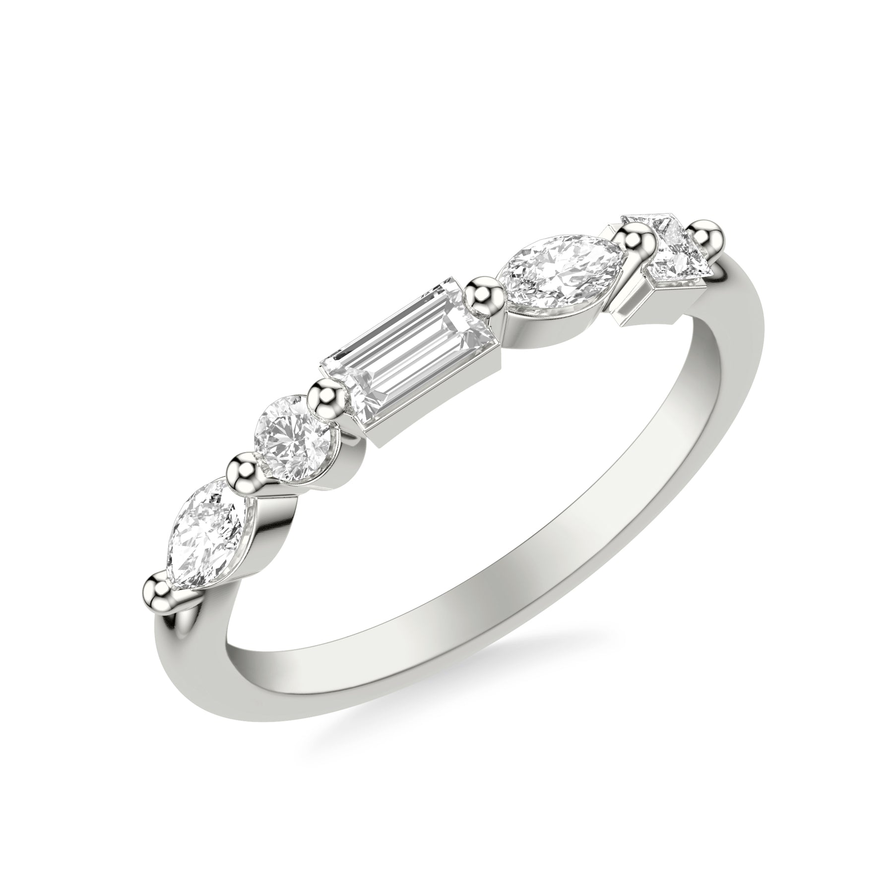 Contemporary Stackable with Distance Mixed Marquise and Baguette and Princess and Pear and Round Diamond Ring