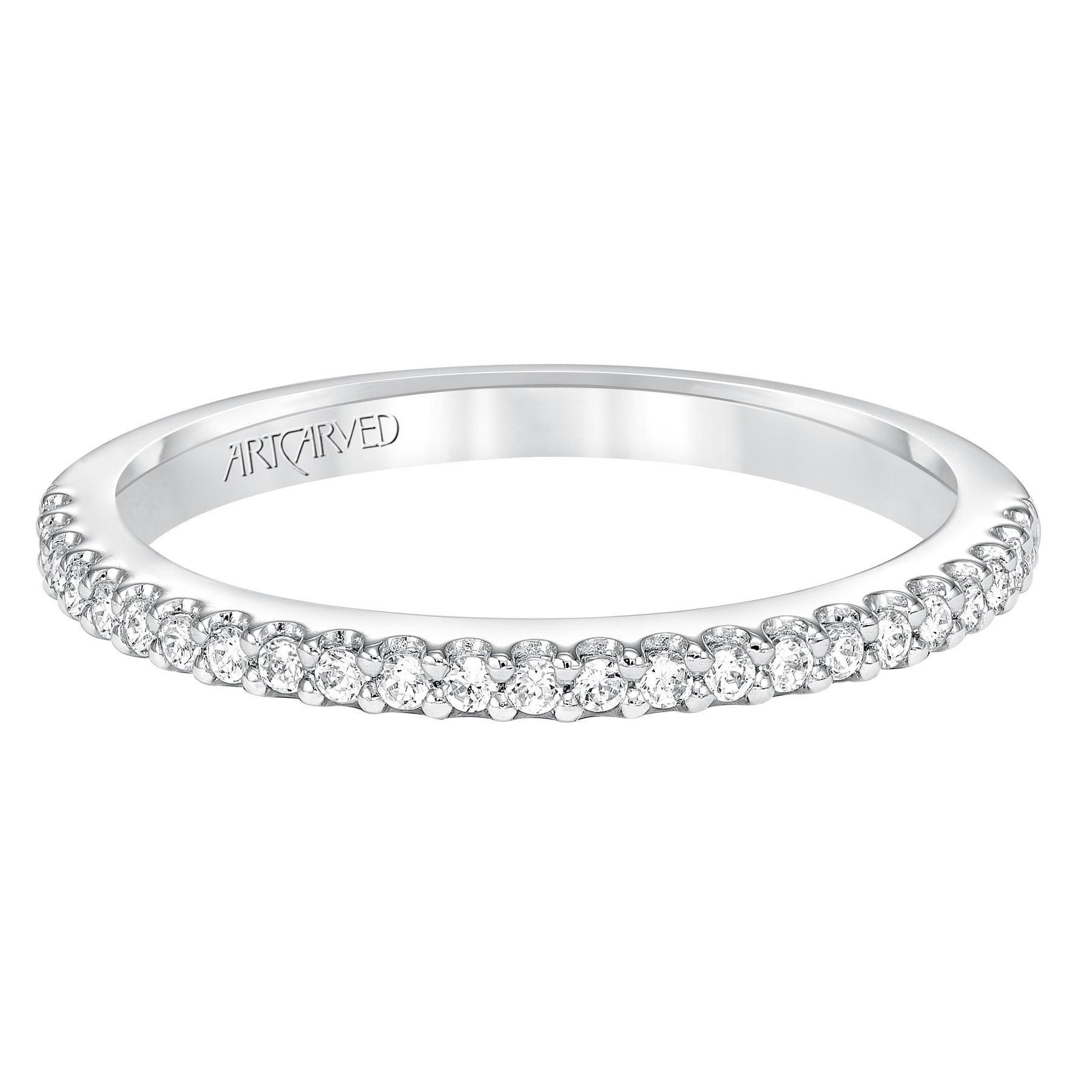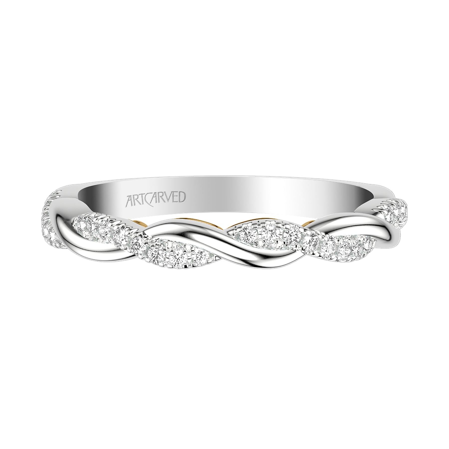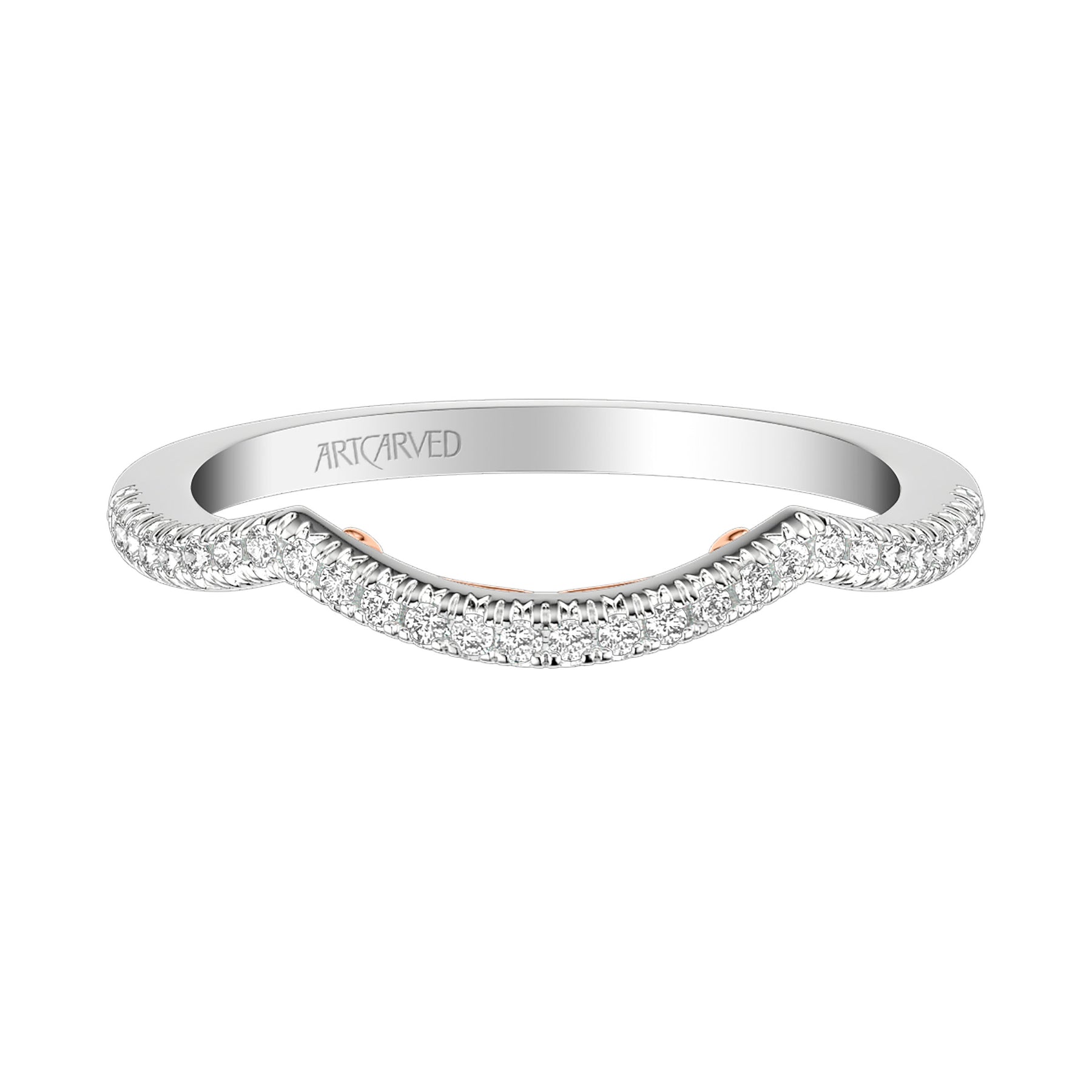 Lyric Curved Diamond Wedding Band with Inner Carved details
