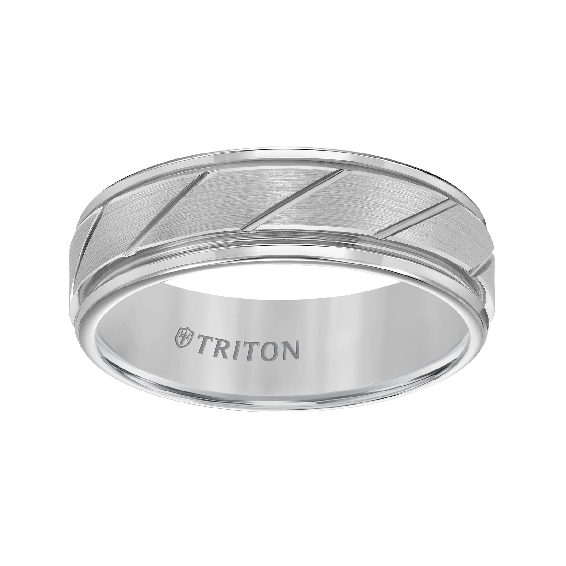 7mm White Tungsten Carbide Flat Satin Finish Center with Bright Diagonal Cuts and Rims Comfort Fit Band