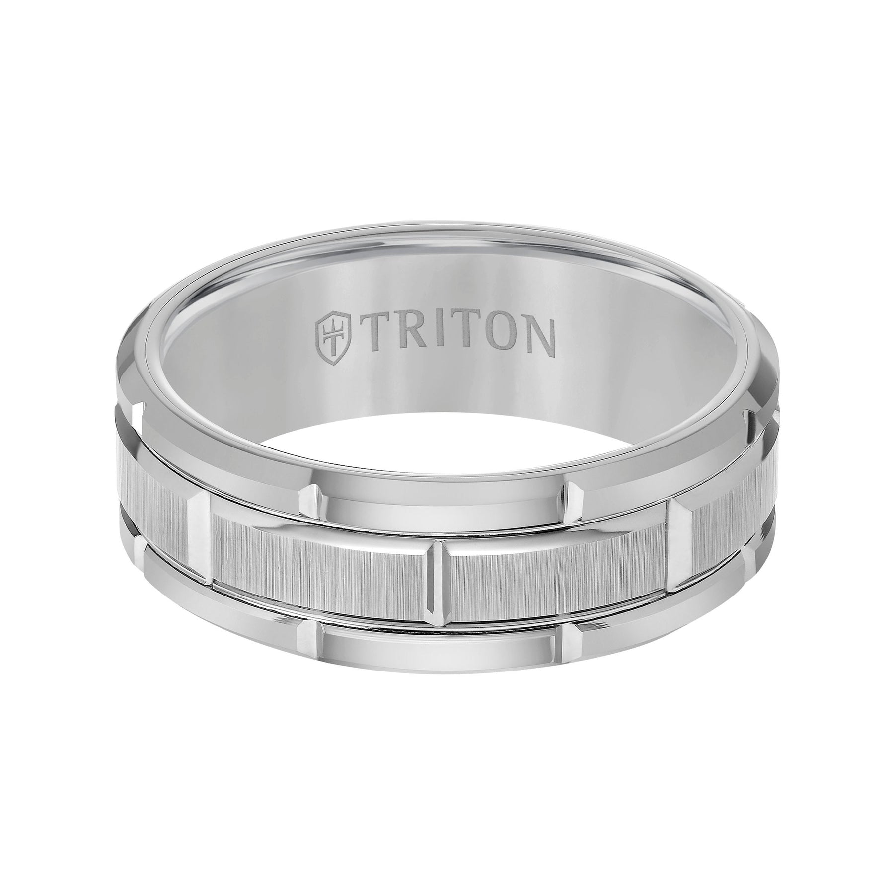 8mm White Tungsten Carbide Bevel Edge Comfort Fit Band with Vertical Satin Finish Center and Bright Edges and Cuts