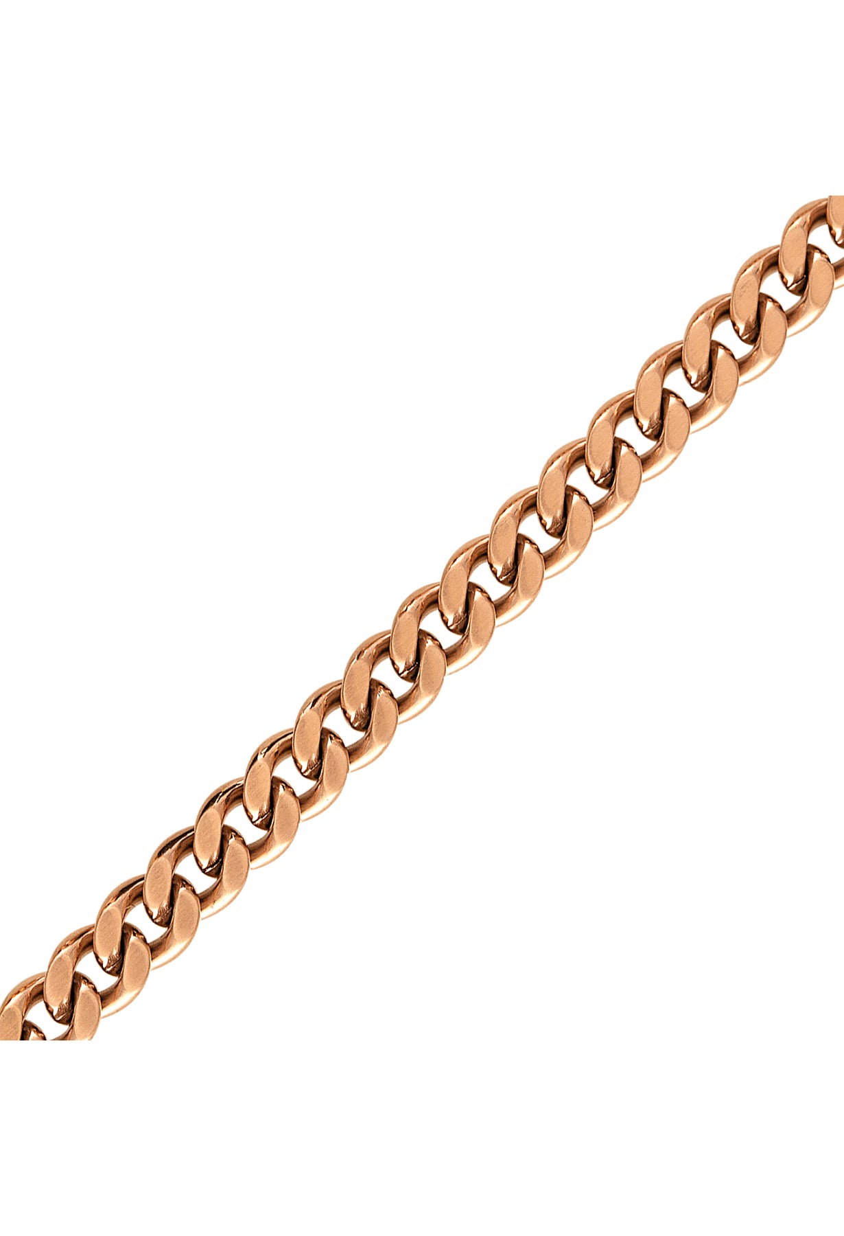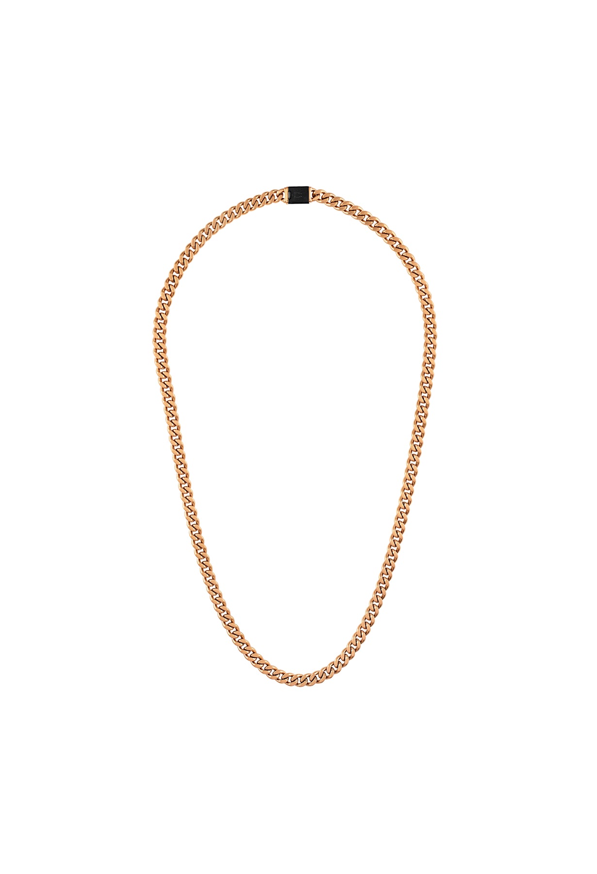 A classic Bulova curb chain of dual-surfaced links modernized in a striking rose color. A distinctly bold 22"" necklace made of 6MM rose-tone stainless steel combines both polished and brushed finishes. Gunmetal-colored, custom-designed clasp with tongue in the shape of the Bulova signature tuning fork is subtly branded with the Latin GRAMMY® logo.