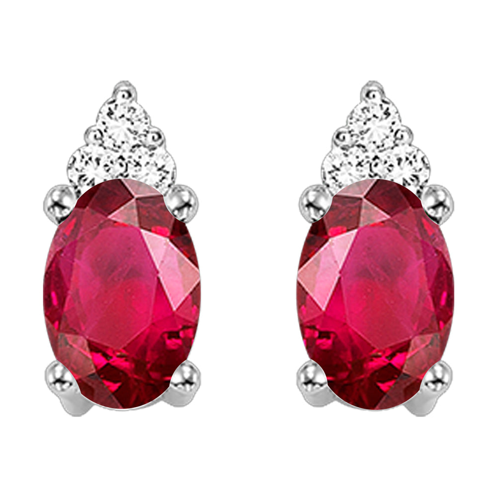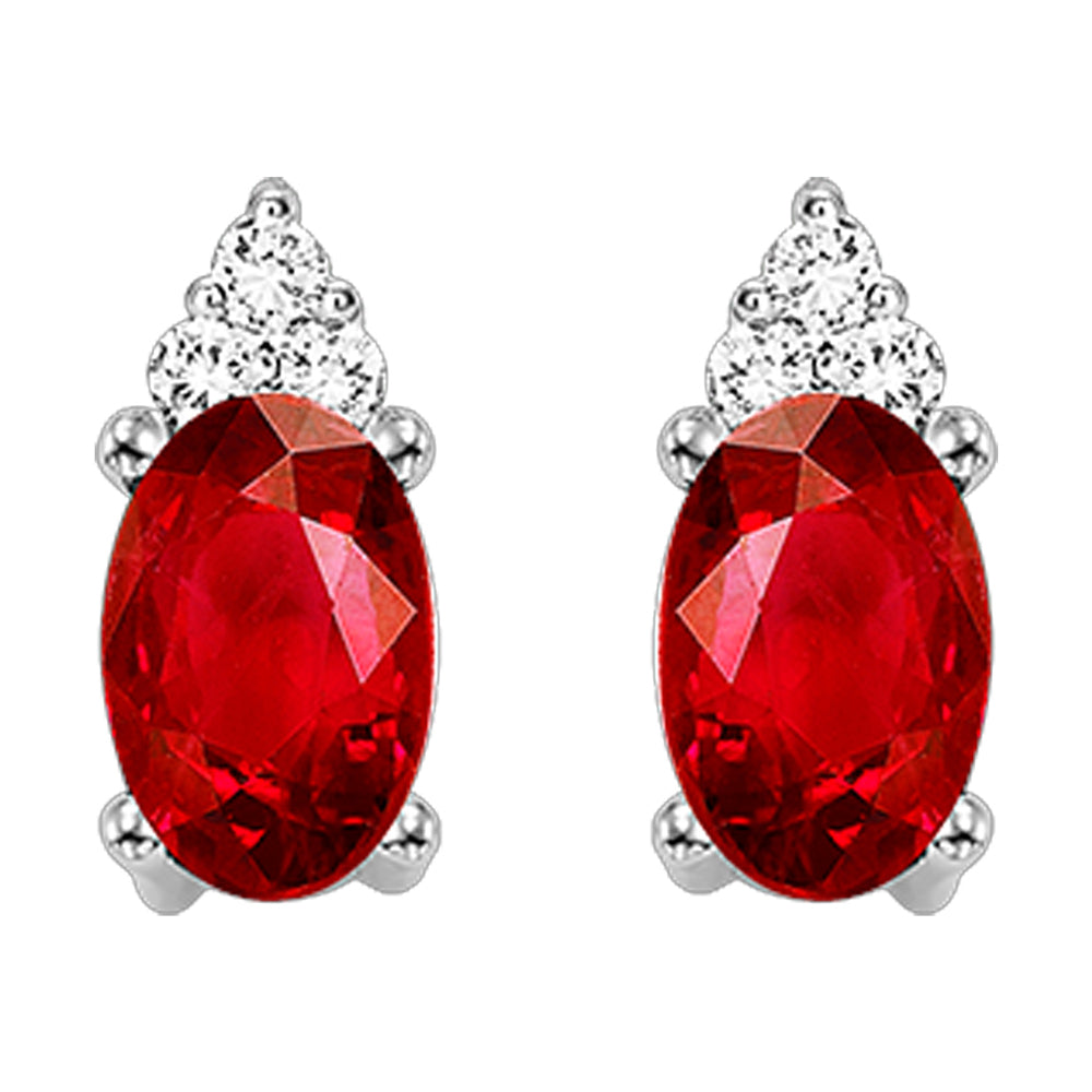 10Kt White Gold Diamond 1/25Ctw & Ruby 1/2Ctw Earring