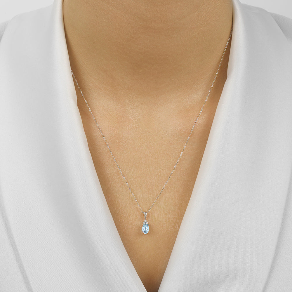 10Kt White Gold Diamond 1/50Ctw & Aquamarine 3/8Ctw Pendant