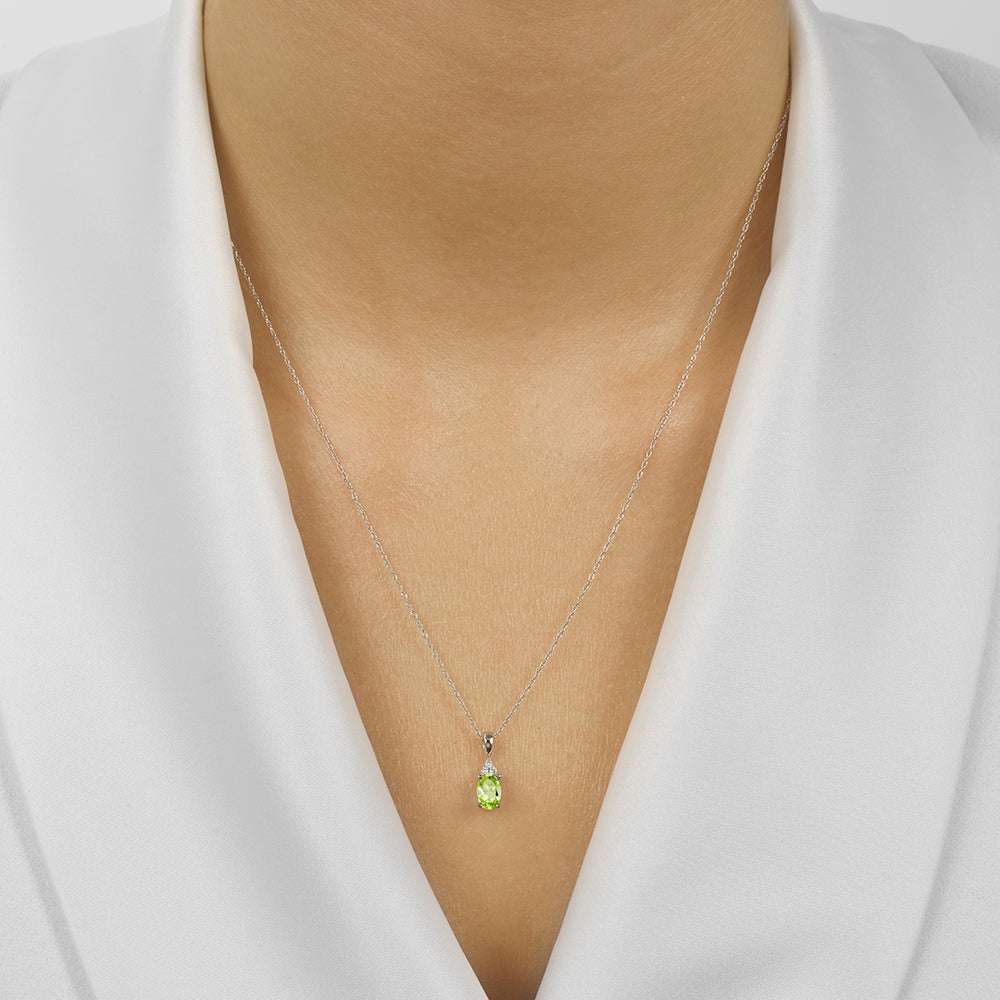 10Kt White Gold Diamond 1/50Ctw & Peridot 1/2Ctw Pendant