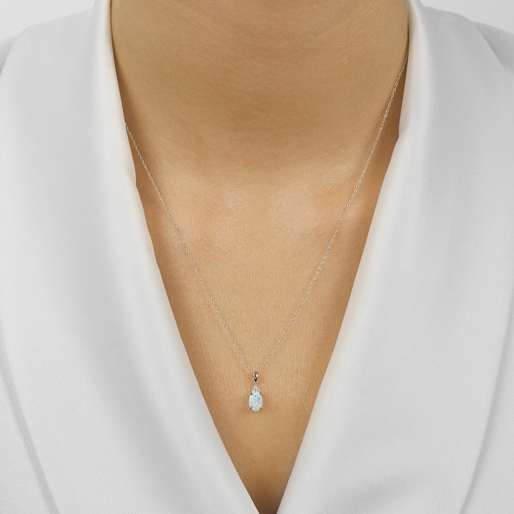 10Kt White Gold Diamond 1/50Ctw & Opal 5/8ctw Pendant