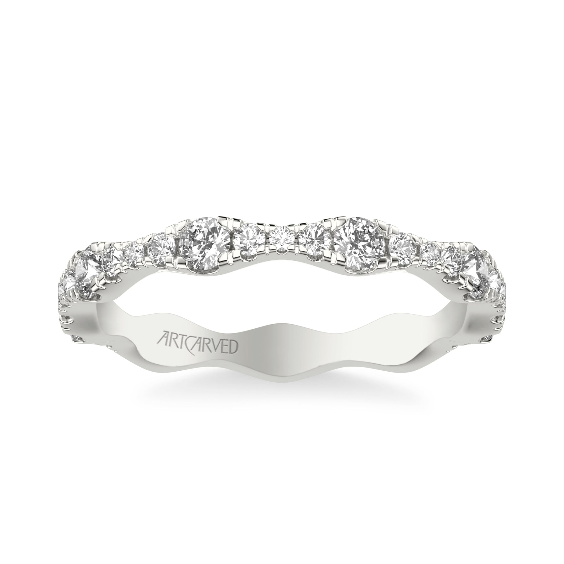 Classic Wedding Band with Graduated Diamond sizes and scalloping design