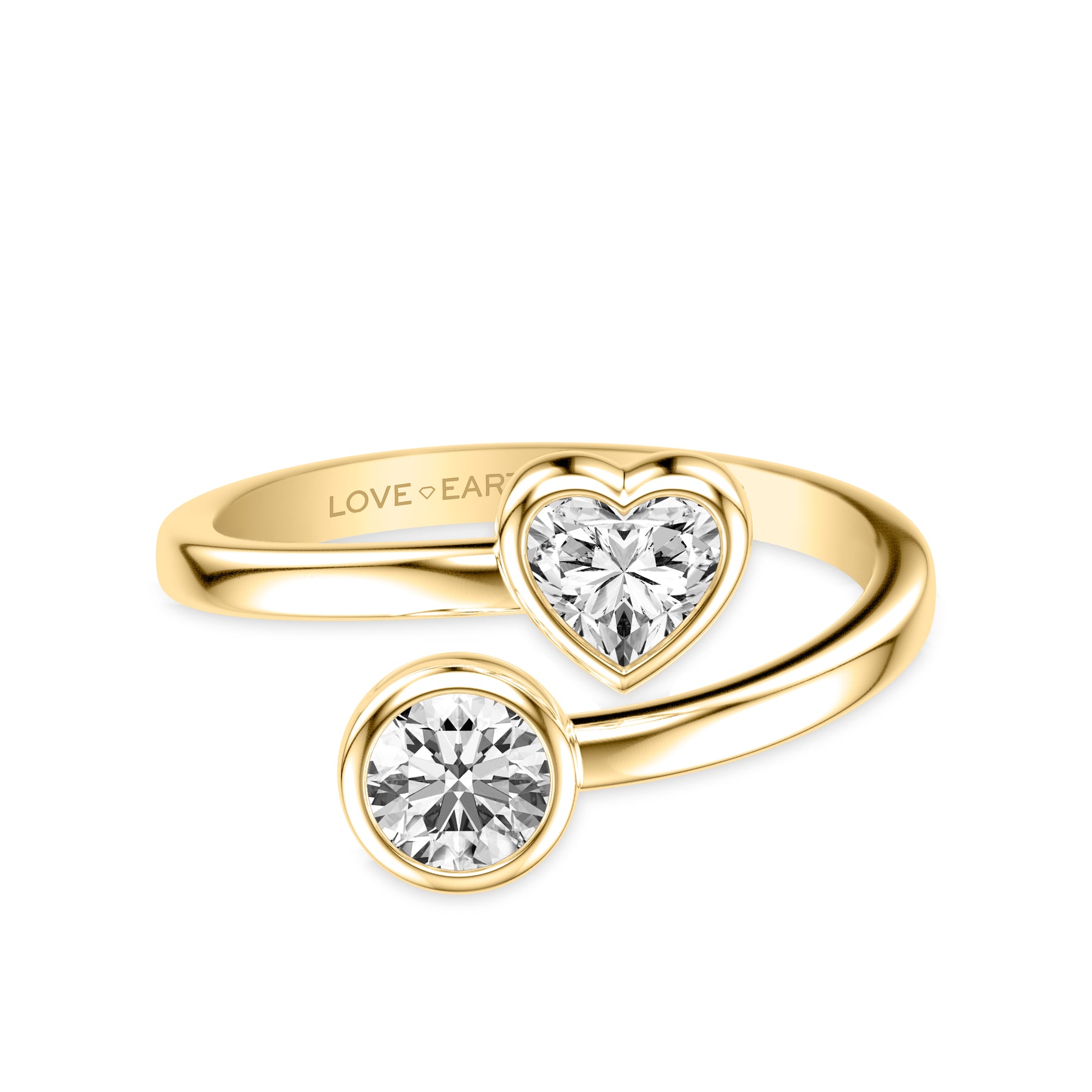 Lab-Created Diamond Bypass Round and Heart Bezel Set Ring