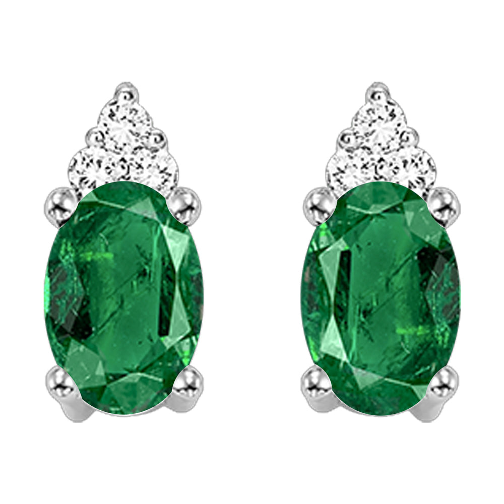 10Kt White Gold Diamond 1/25Ctw & Emerald 5/8Ctw Earring