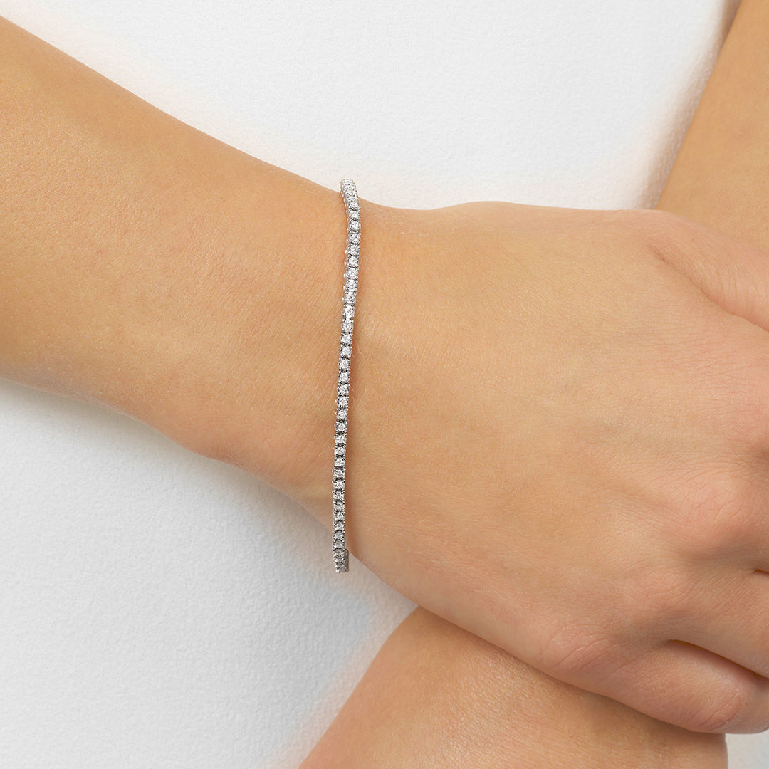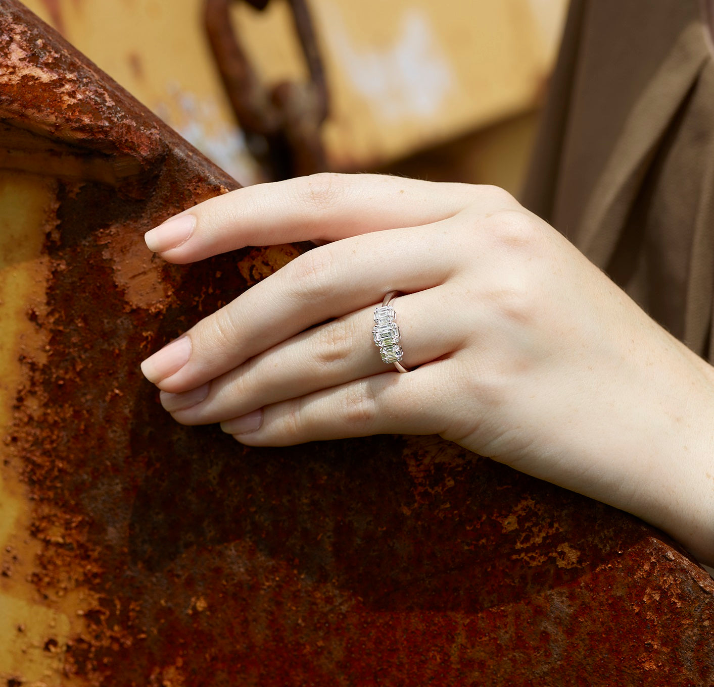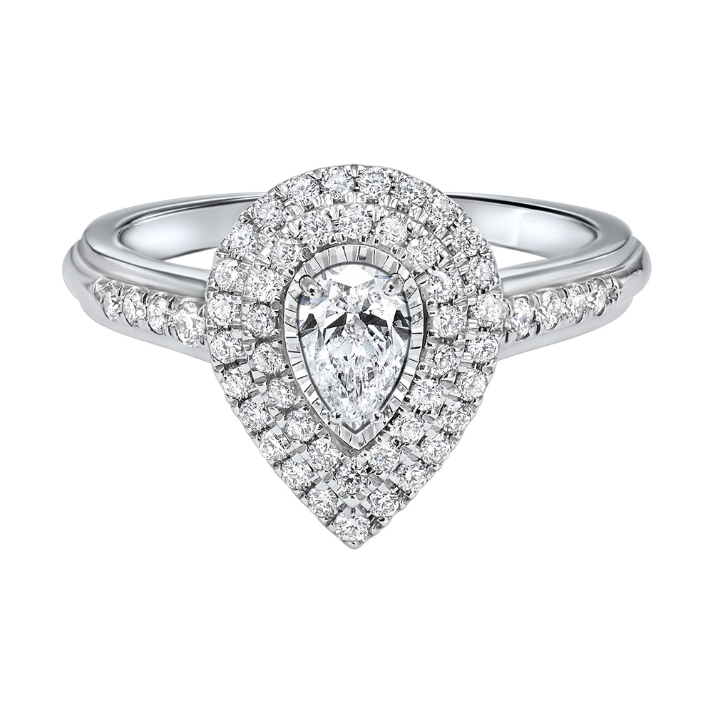 A stunning solitaire, embraced by a criss cross shank adorned with alternating flow of dazzling diamonds is sure to captivate her look.