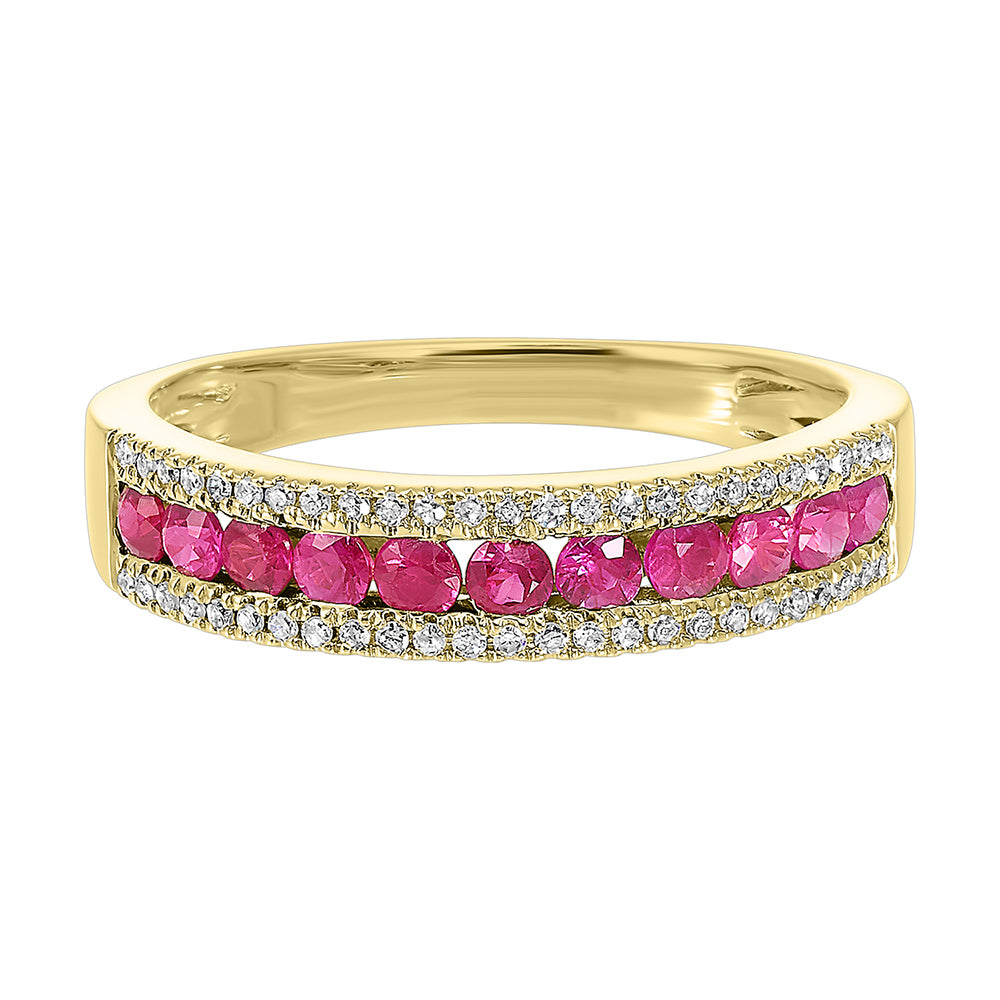 14Kt Yellow Gold Diamond 1/8Ctw & Ruby 1/2Ctw Ring
