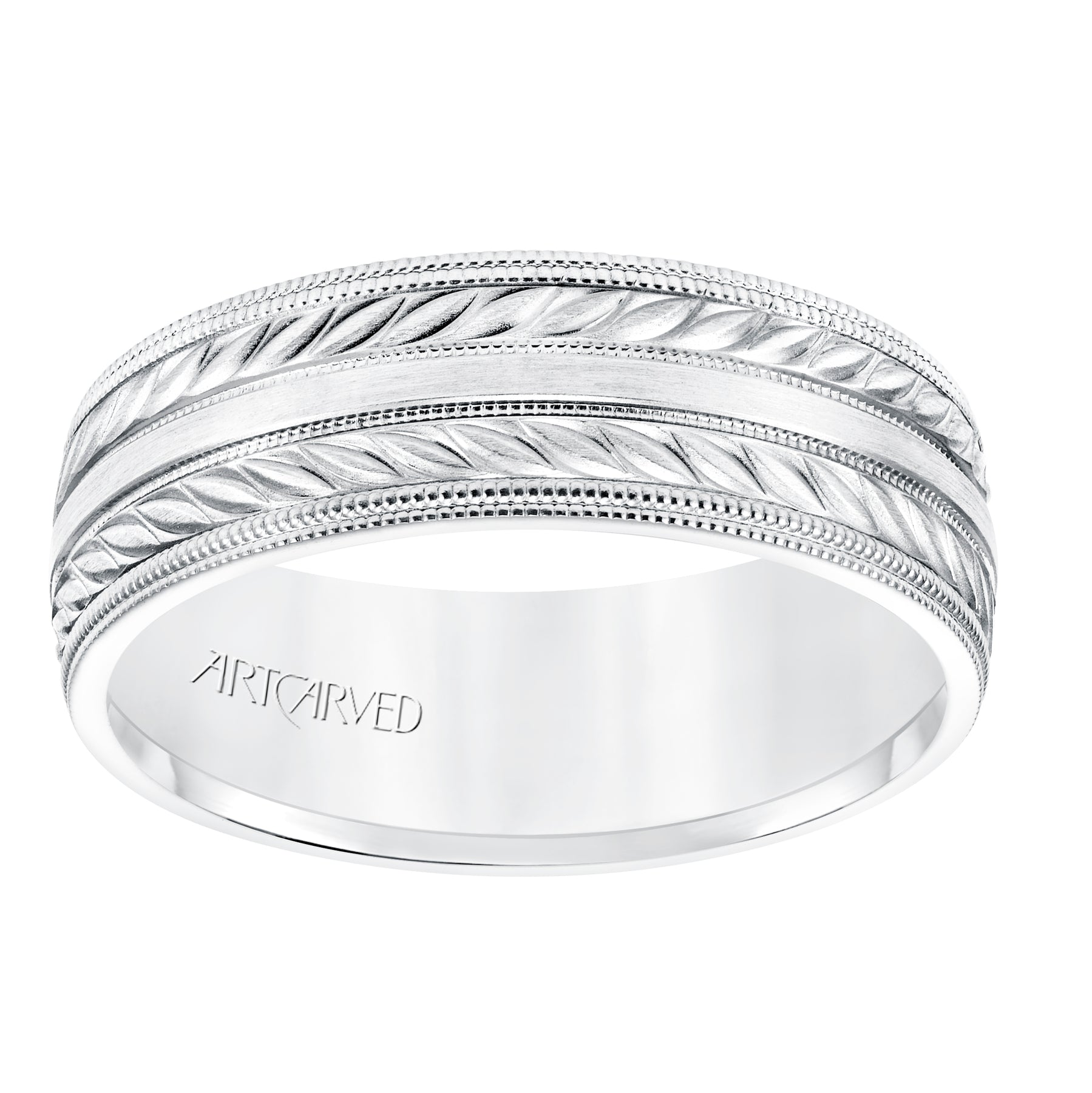 11-WV8671W7-G.00 - ARTCARVED - 7MM Comfort Fit Wedding Band with a Wheat Motif and Milgrain Accent with Milgrain Edges