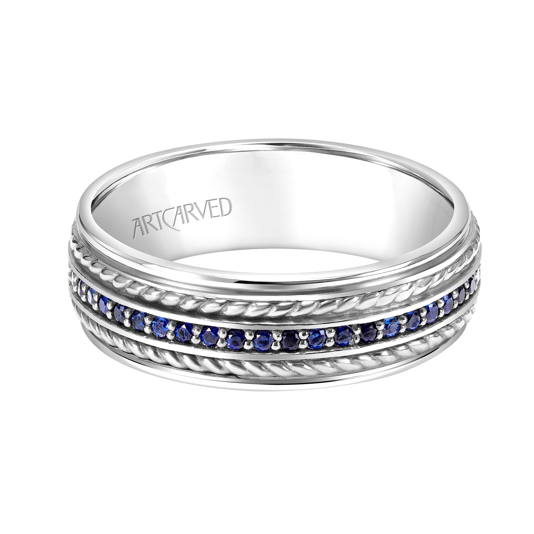11-WV8731YW7-G.00 - ARTCARVED - 7MM Wedding Band with Satin Finish, Rope Inlay Detail and Polished Edges