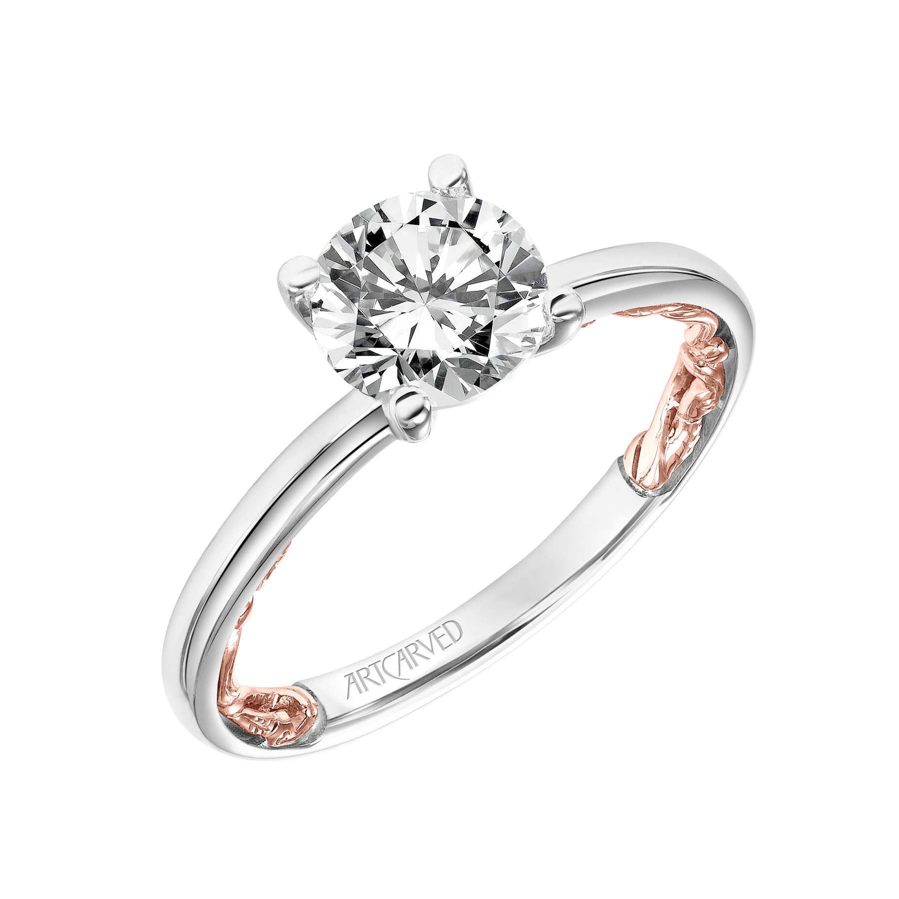 31-V904GRWR-E.01 - ARTCARVED - Lyric Solitaire Diamond Engagement Ring with Inner Carved details and Polished Shank