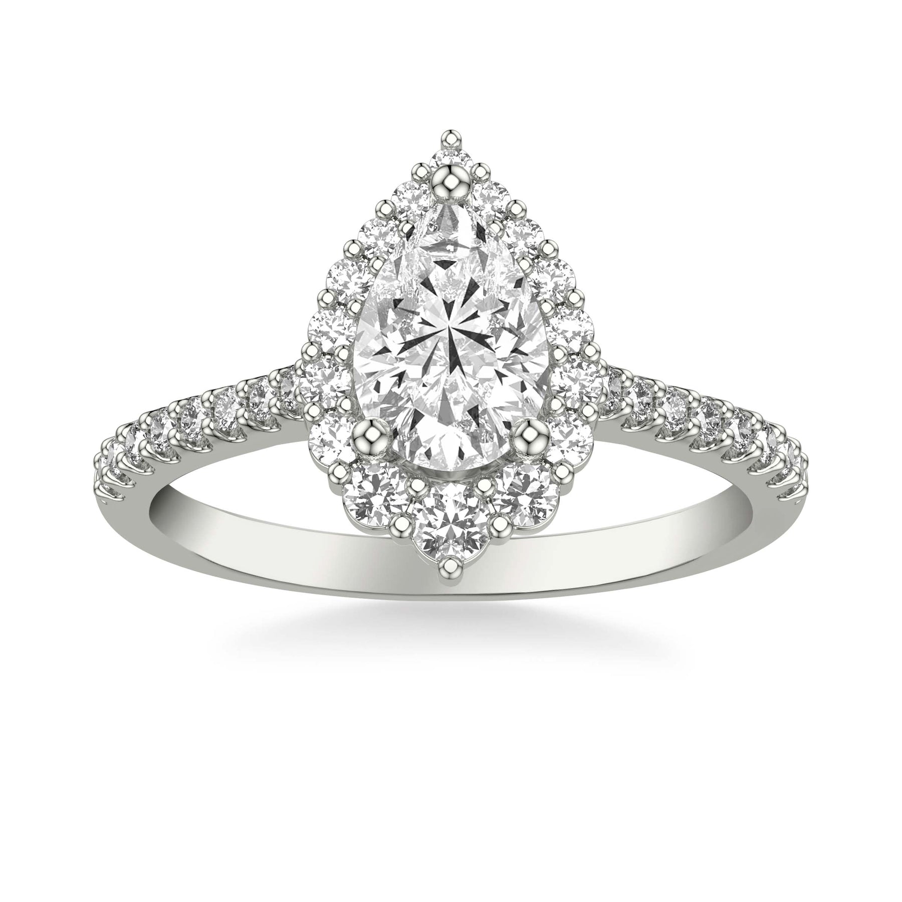 Classic Pear Diamond Halo Engagement Ring with Graduated Diamonds and Diamond Shank