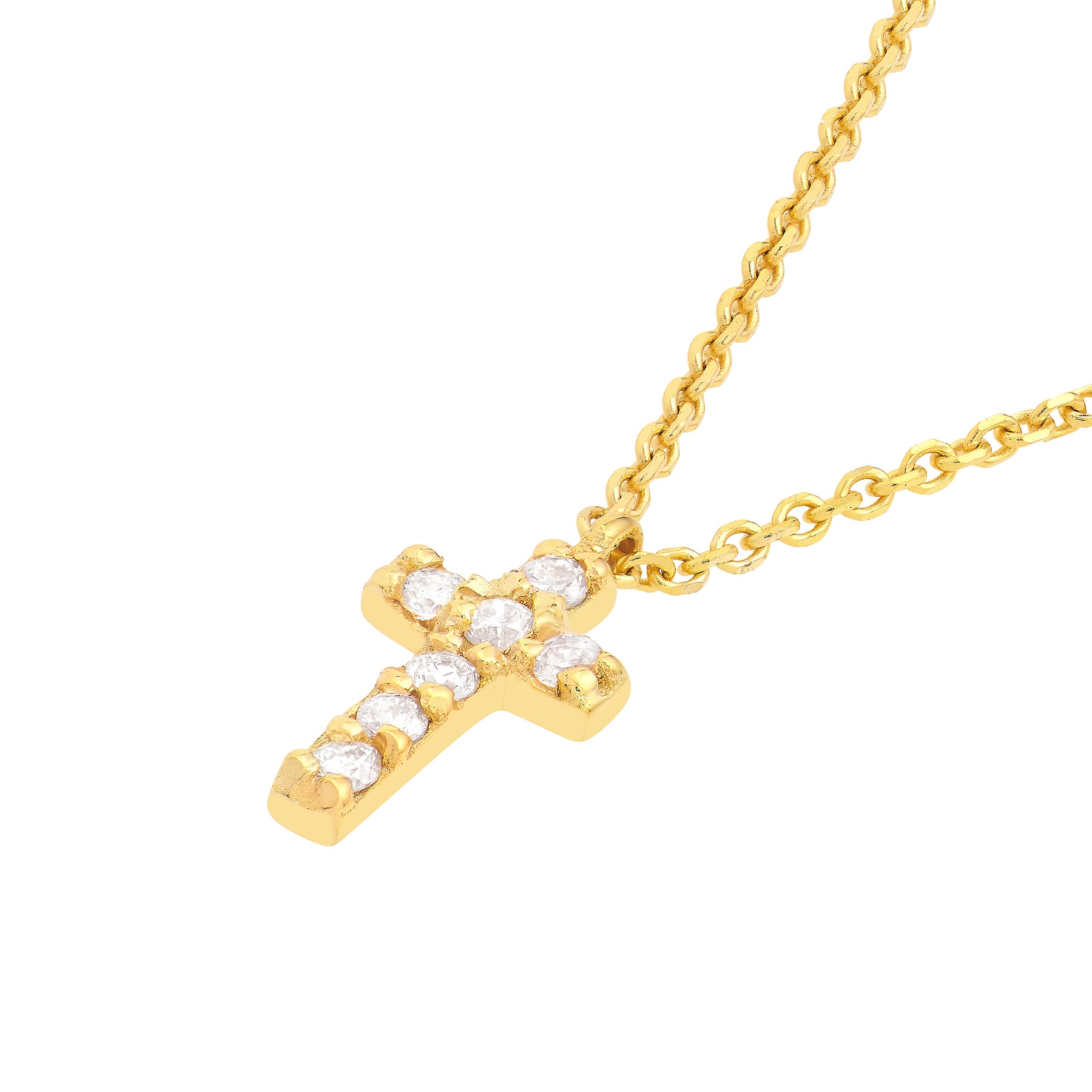 Show off your faith with dainty fashion jewelry. This 14K gold 1/15tcw diamond mini cross necklace adds a graceful element to your neckline.