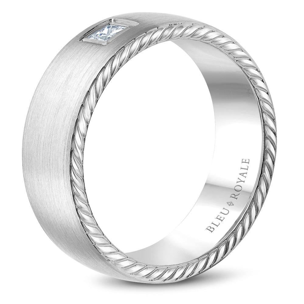 A 8.00mm Bleu Royale Wedding Band in White Gold With 1 PR, TCW 0.15ct