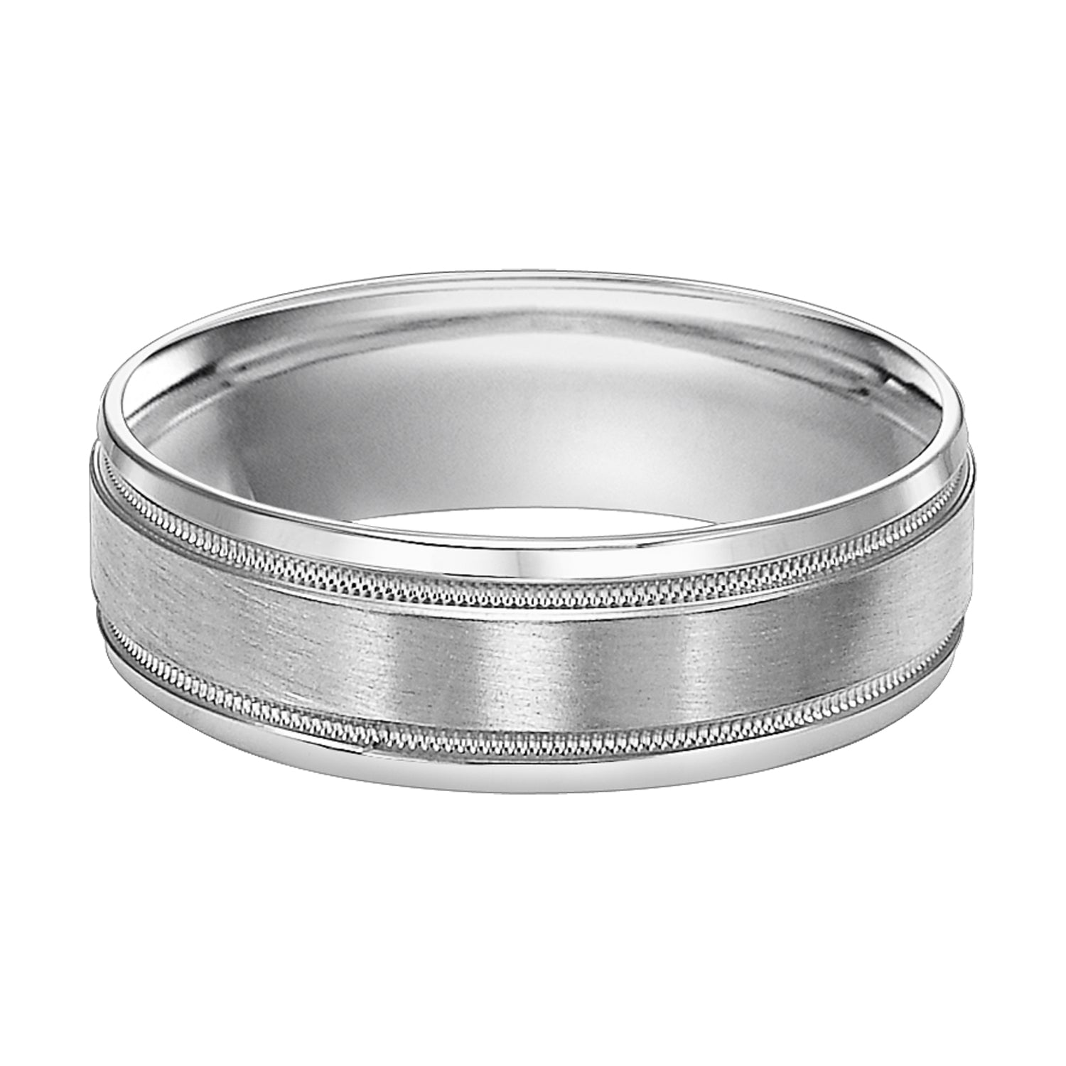 Mens Wedding Band with Satin Finish Milgrain Accents and Polished Round Edge