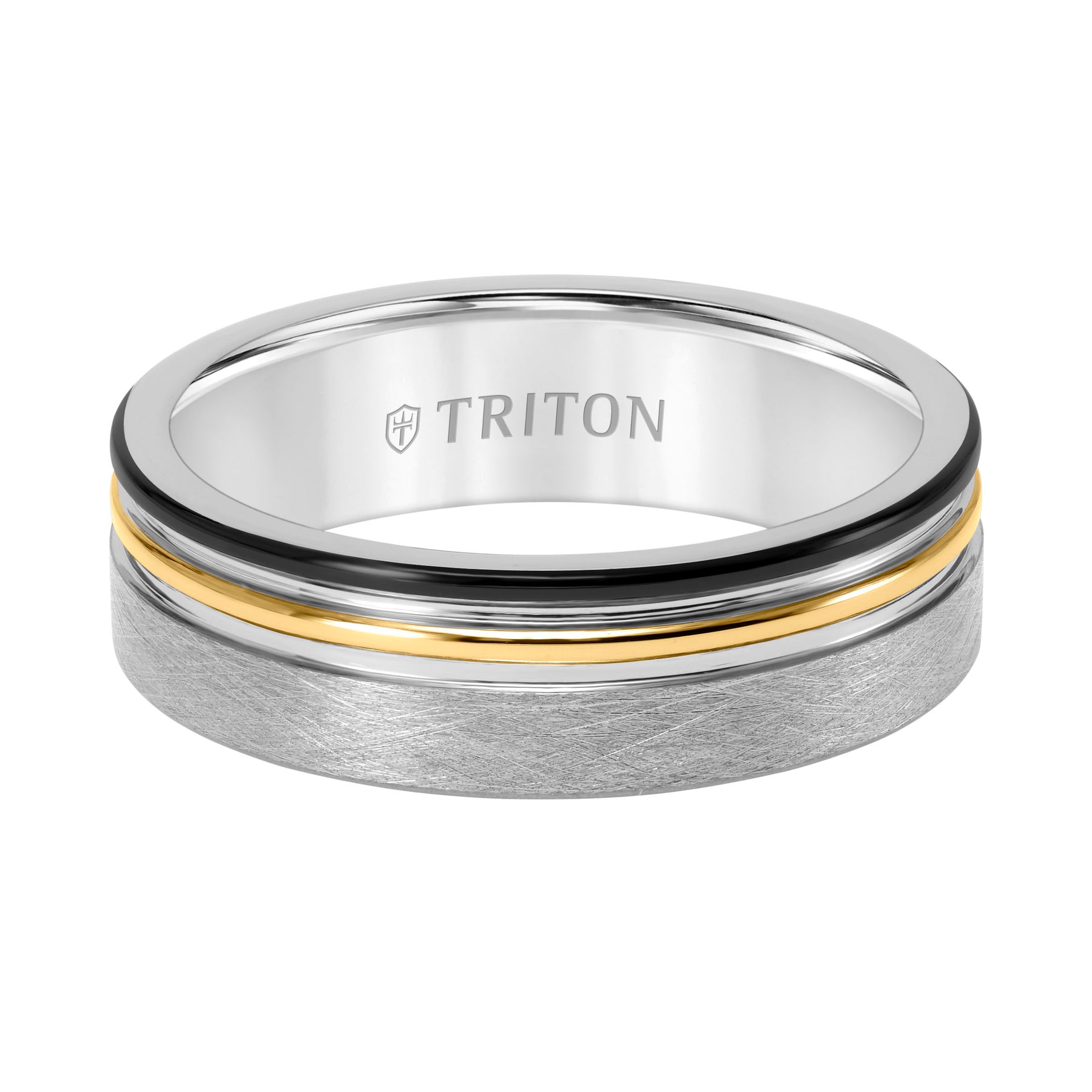 8mm Band with White Tungsten Exterior and Double Engraved 14K Yellow Gold Core