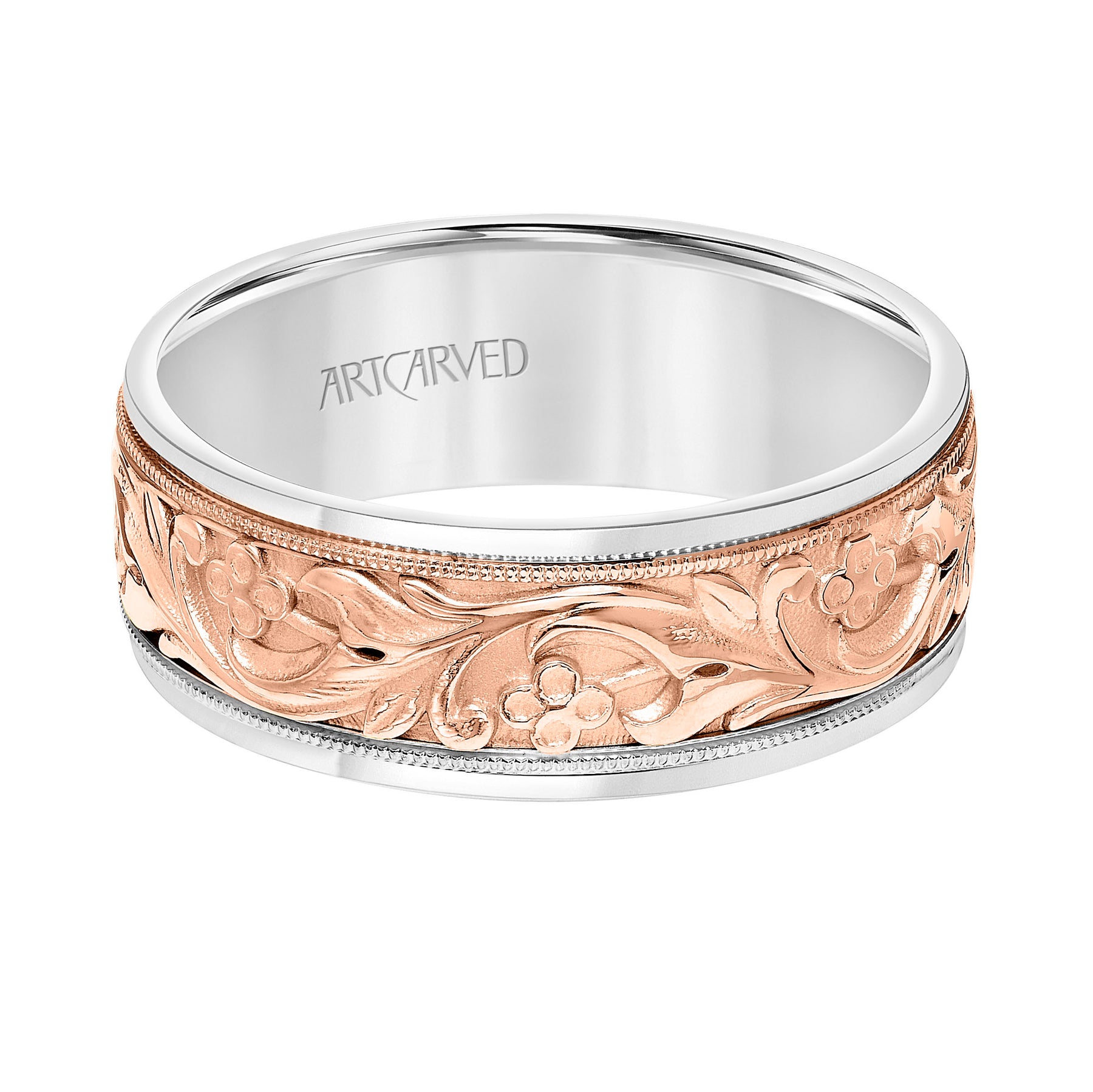22-V8730SWY100-G.00 - ARTCARVED - Low Dome Round Edge Carved Wedding Band