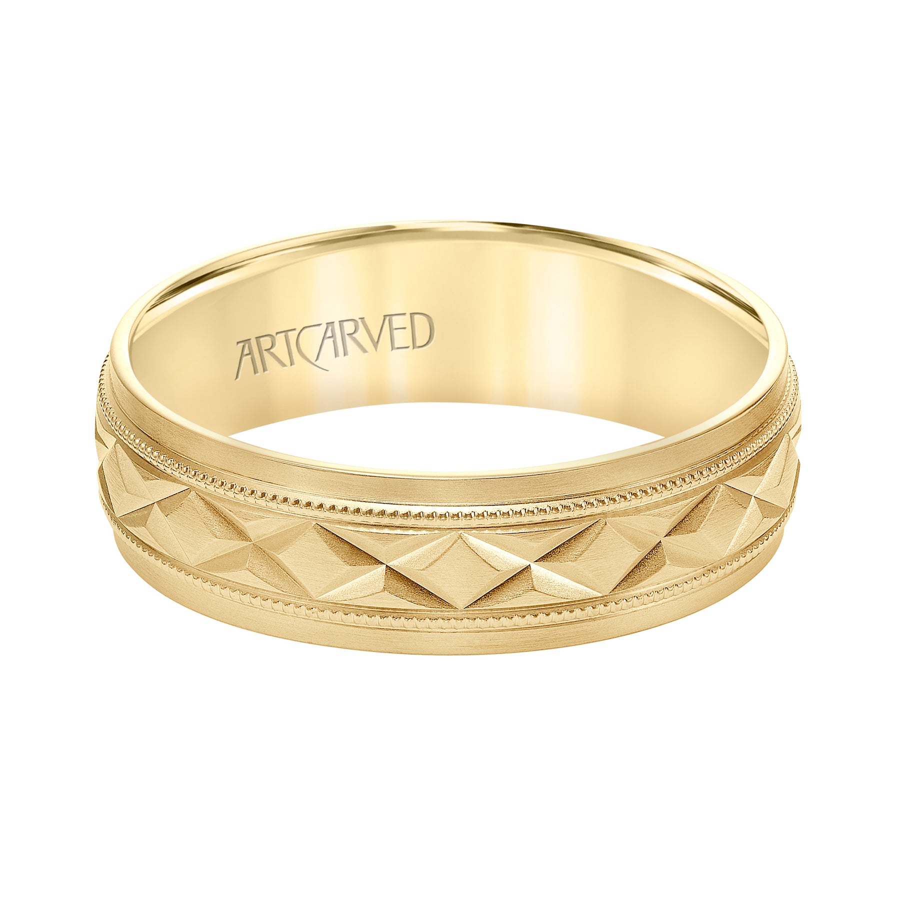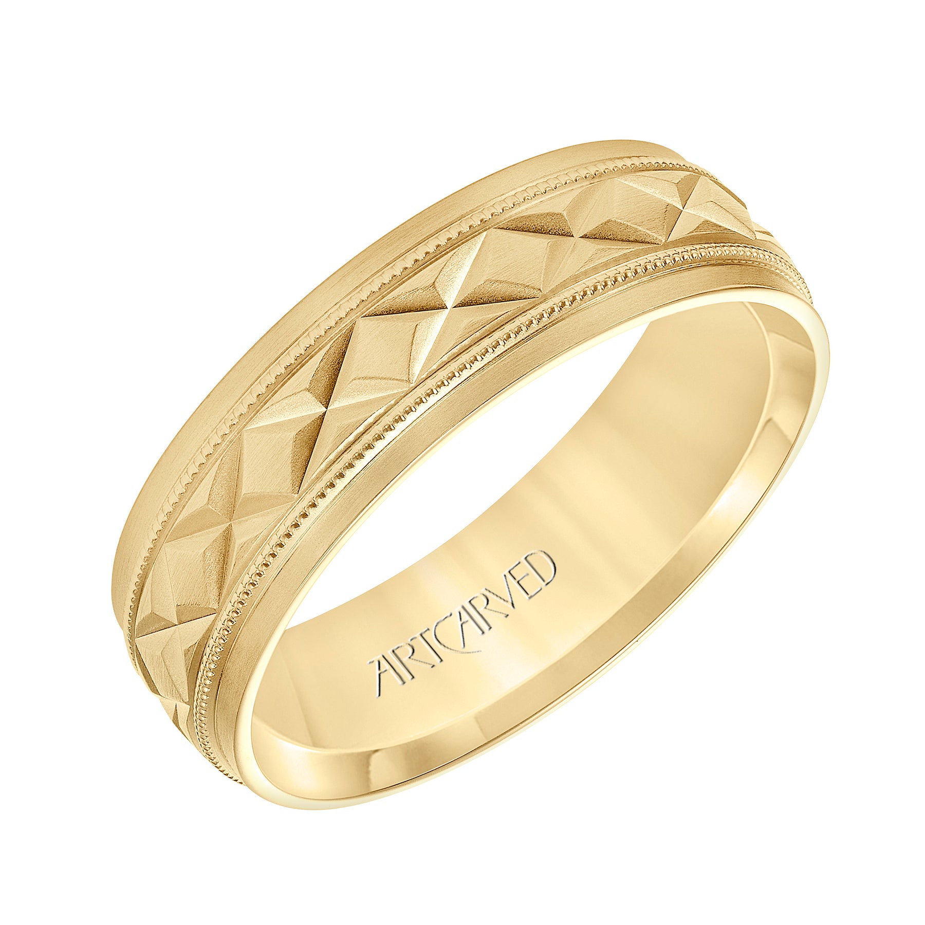 Flat Bevel Edge Carved Wedding Band