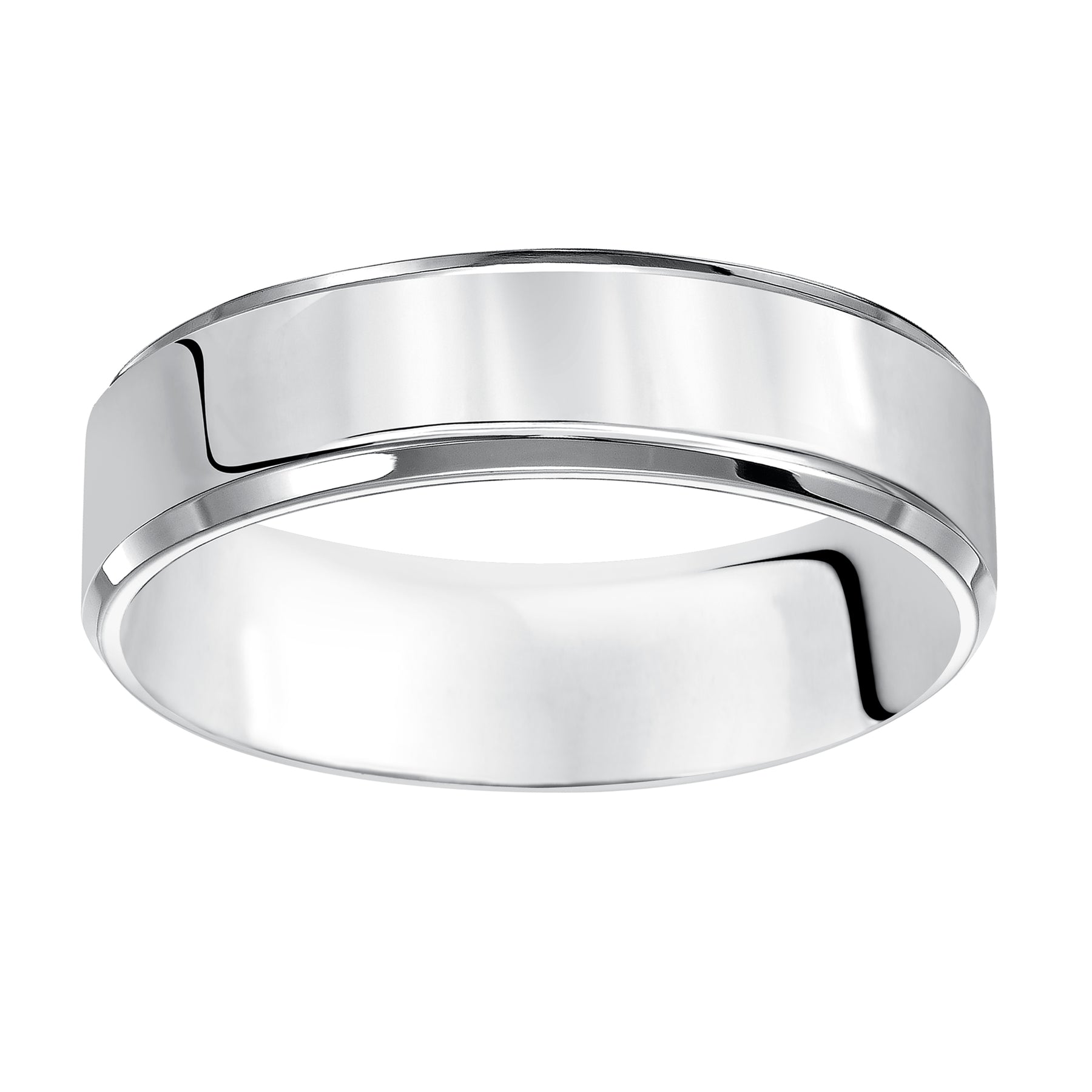 This crisp yet timeless, Comfort Fit wedding features a brushed finish with beveled edge