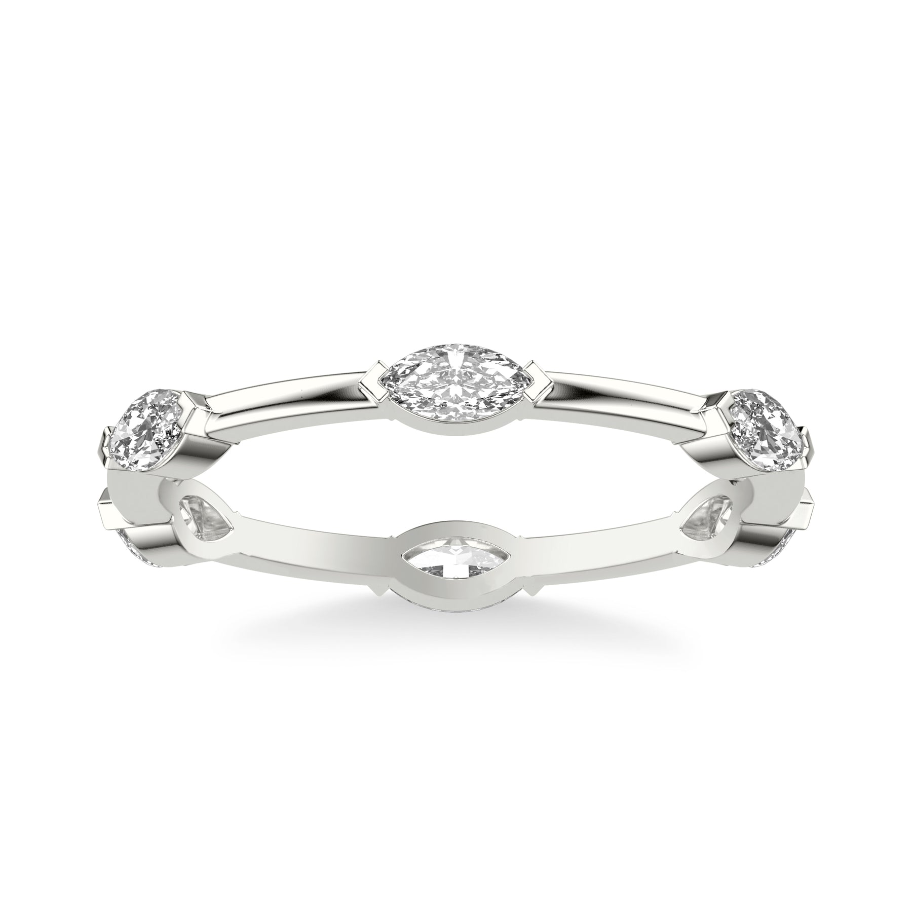 Contemporary Stackable with Bezel Set Marquise Diamonds with Polished Band